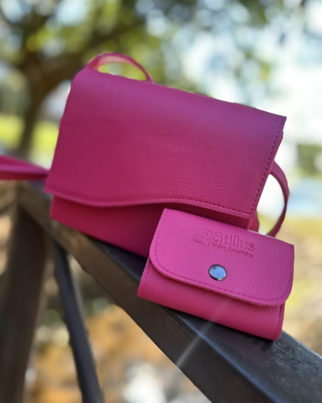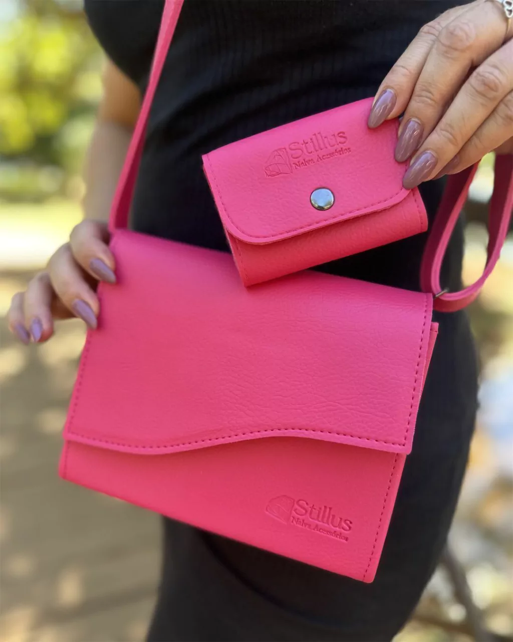 A Bolsa Bag Onda - Pink é a combinação perfeita de estilo vibrante e funcionalidade. Com seu design moderno e elegante na cor Pink, ela se destaca em qualquer look. Esta bolsa possui um bolso interno para organização de itens essenciais e vem acompanhada de um porta-cartões como brinde. O fechamento em botão de pressão garante segurança, enquanto a versatilidade de uso como bolsa de mão ou com a alça transversal ajustável oferece praticidade para diversas ocasiões. Uma escolha ideal para quem busca um acessório charmoso e funcional.
