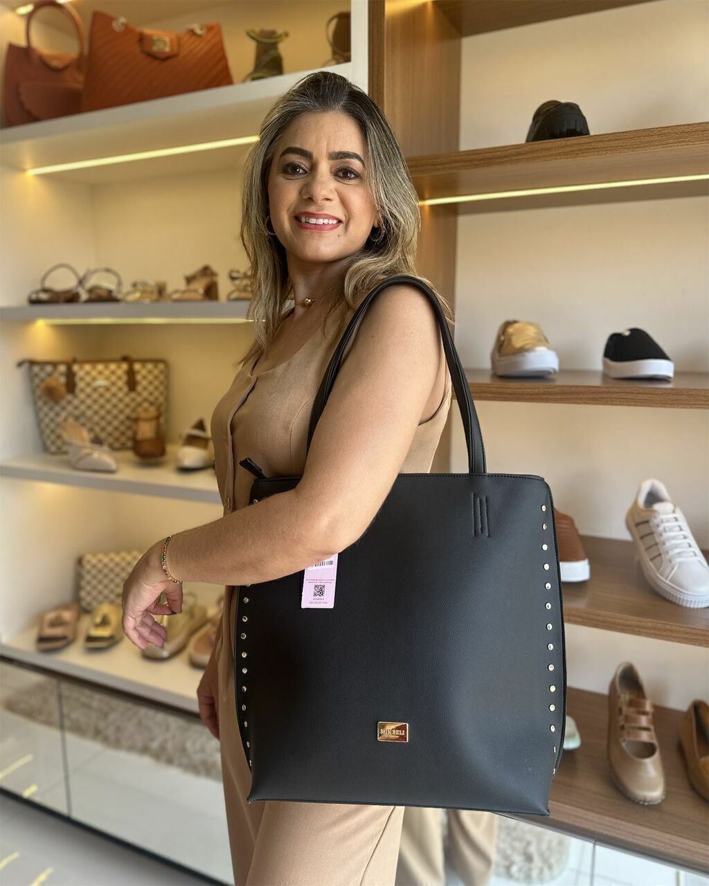 Moderna e sofisticada, a Bolsa Tote Preta com Rebites Dourados é perfeita para quem busca elegância e praticidade no dia a dia. Seu design estruturado combina o clássico preto com detalhes em rebites dourados, adicionando um toque de estilo e personalidade. Ampla e funcional, oferece espaço ideal para acomodar seus itens essenciais com organização. Versátil, pode ser usada tanto em ocasiões casuais quanto em momentos mais formais, garantindo sempre um look impecável.