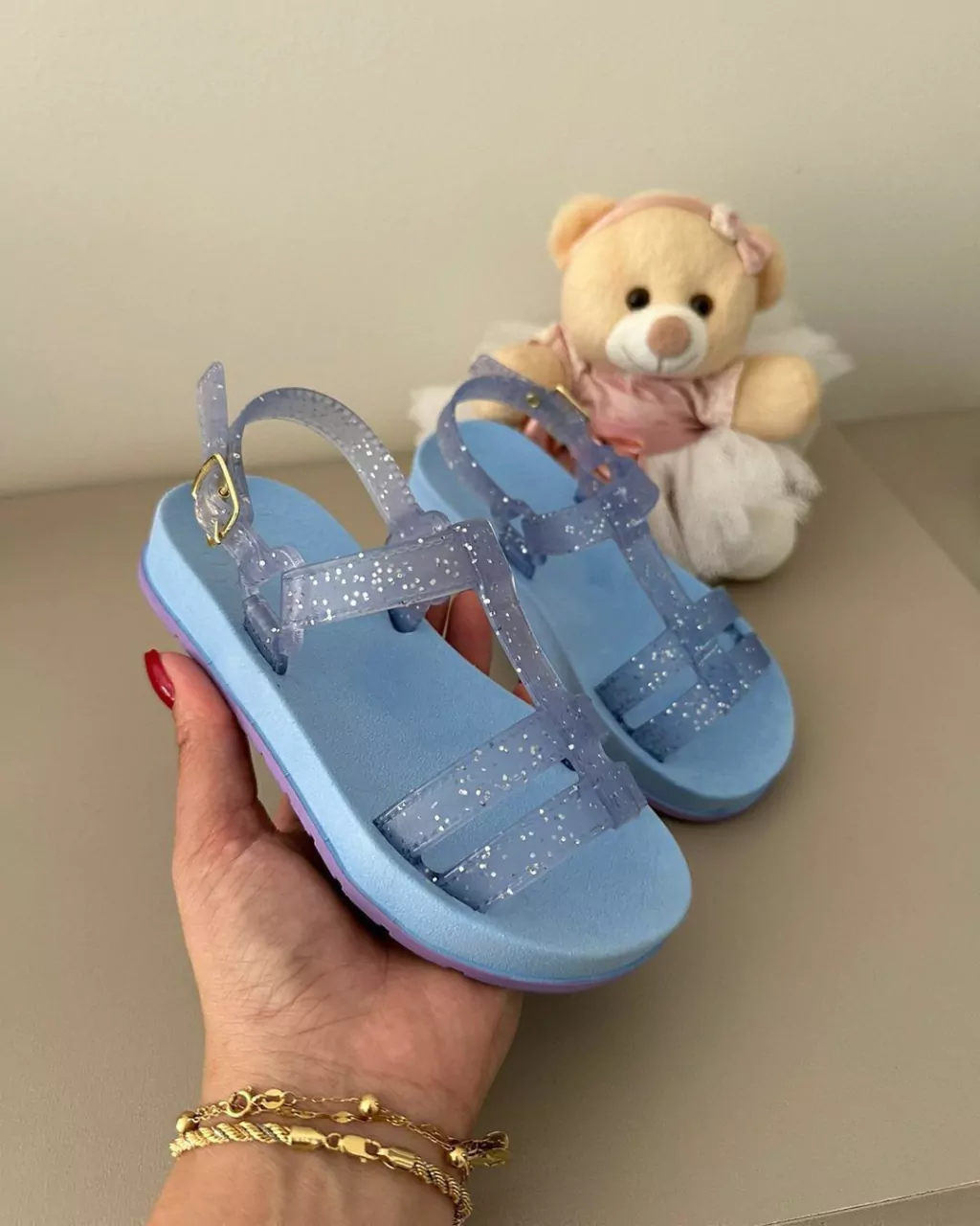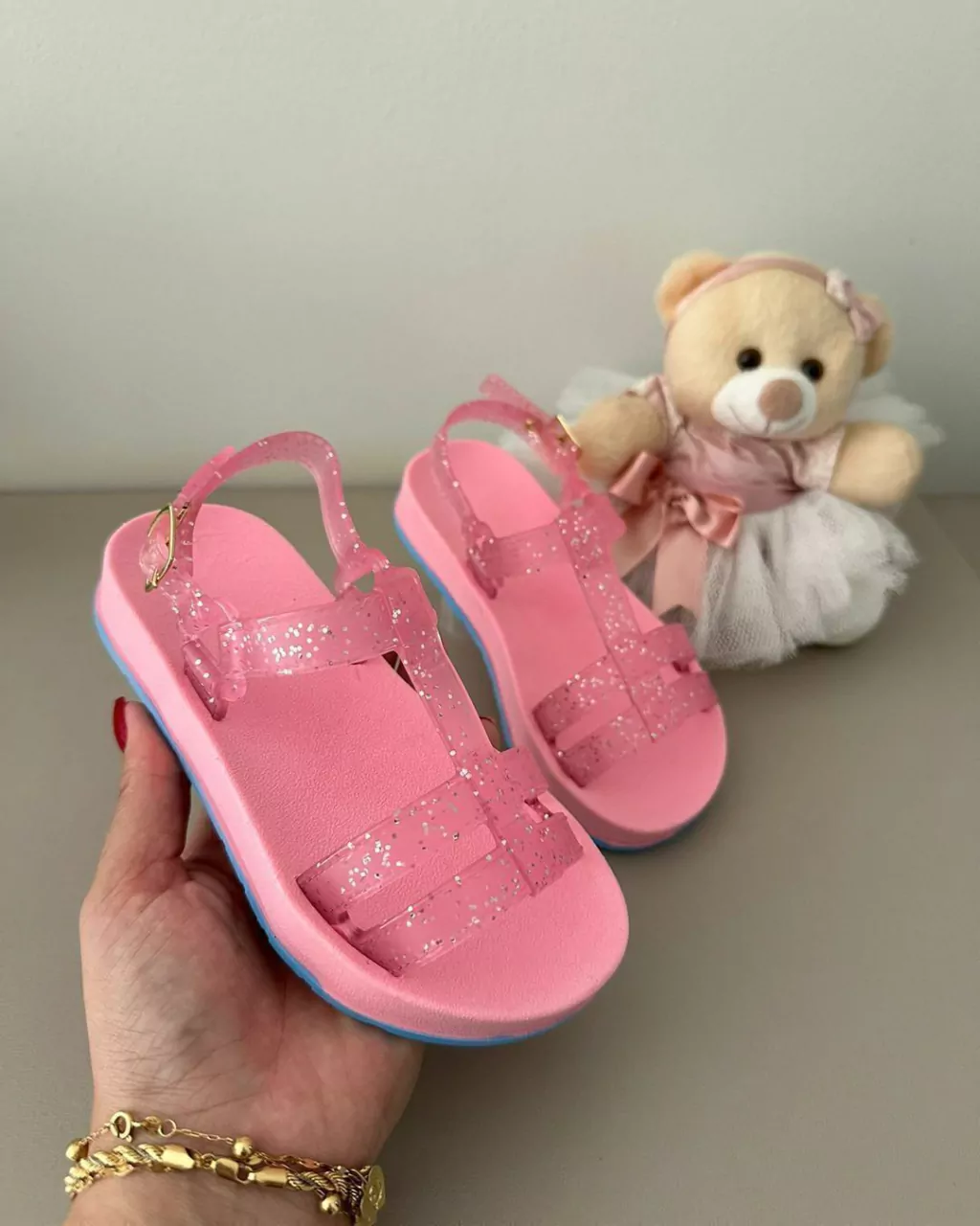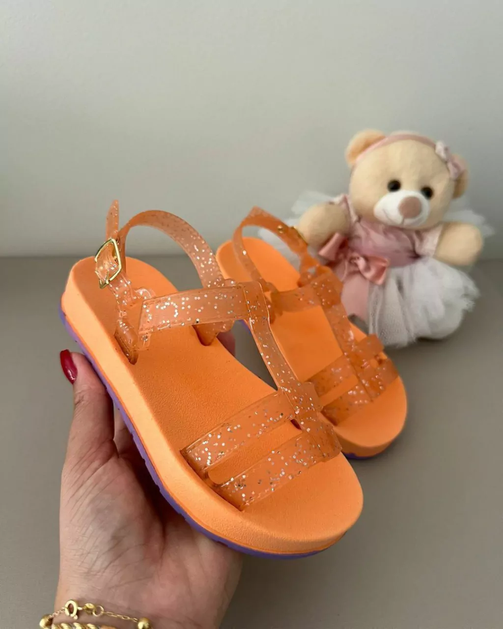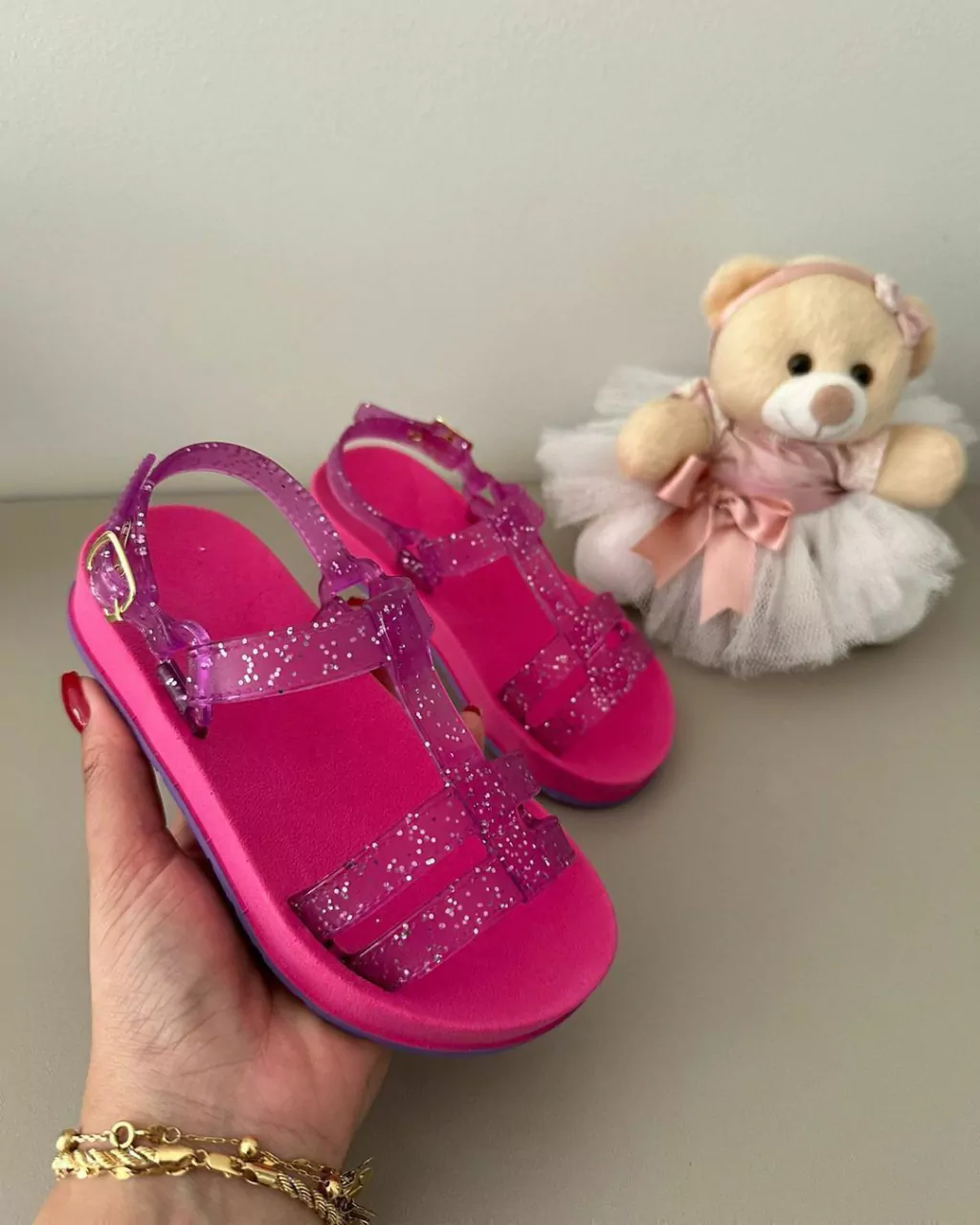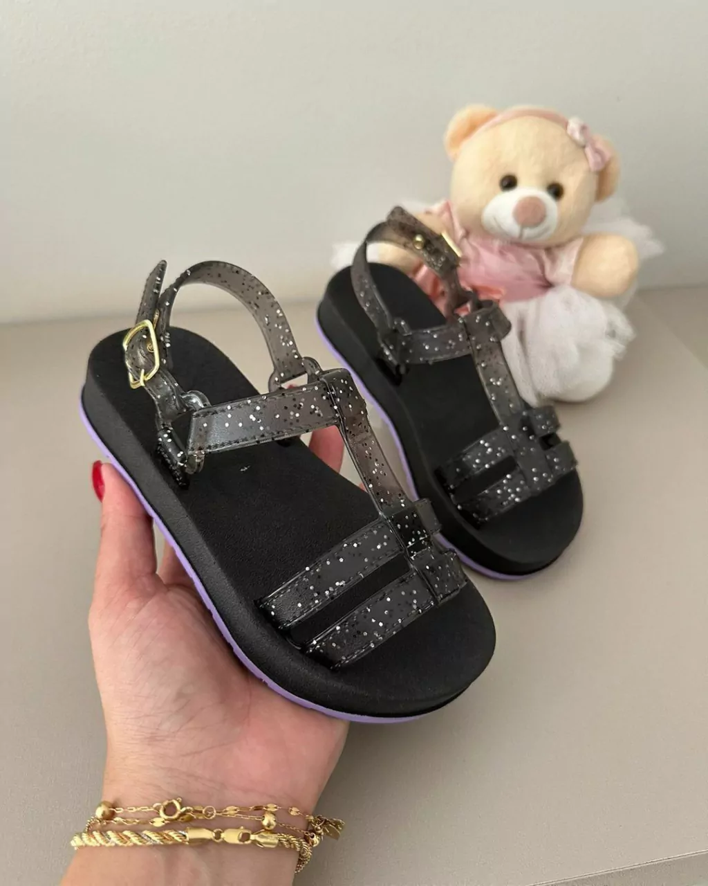 A mini sandália com glitter é uma verdadeira explosão de brilho e estilo em um pequeno calçado. Com seu design encantador e detalhes reluzentes, essa sandália é uma combinação perfeita de diversão e sofisticação. O glitter, cuidadosamente aplicado, adiciona um toque de glamour e destaque a cada passo.