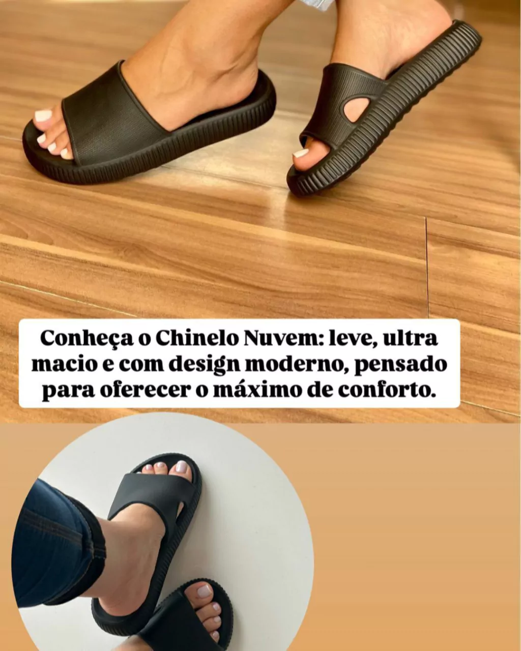 Conheça o Chinelo Nuvem: leve, ultra macio e com design moderno, pensado para oferecer o máximo de conforto. Feito com material flexível e antiderrapante, ele proporciona uma sensação de caminhar nas nuvens, sendo ideal tanto para o dia a dia quanto para relaxar em casa. Perfeito para quem busca estilo e bem-estar em cada passo!