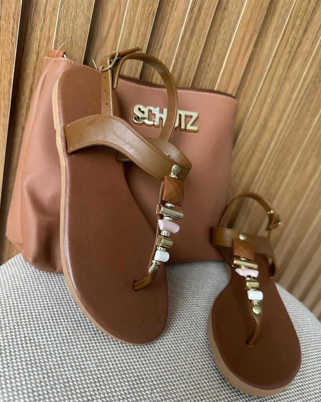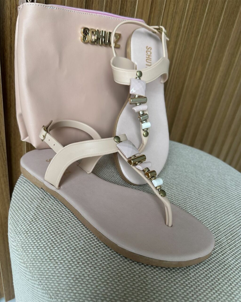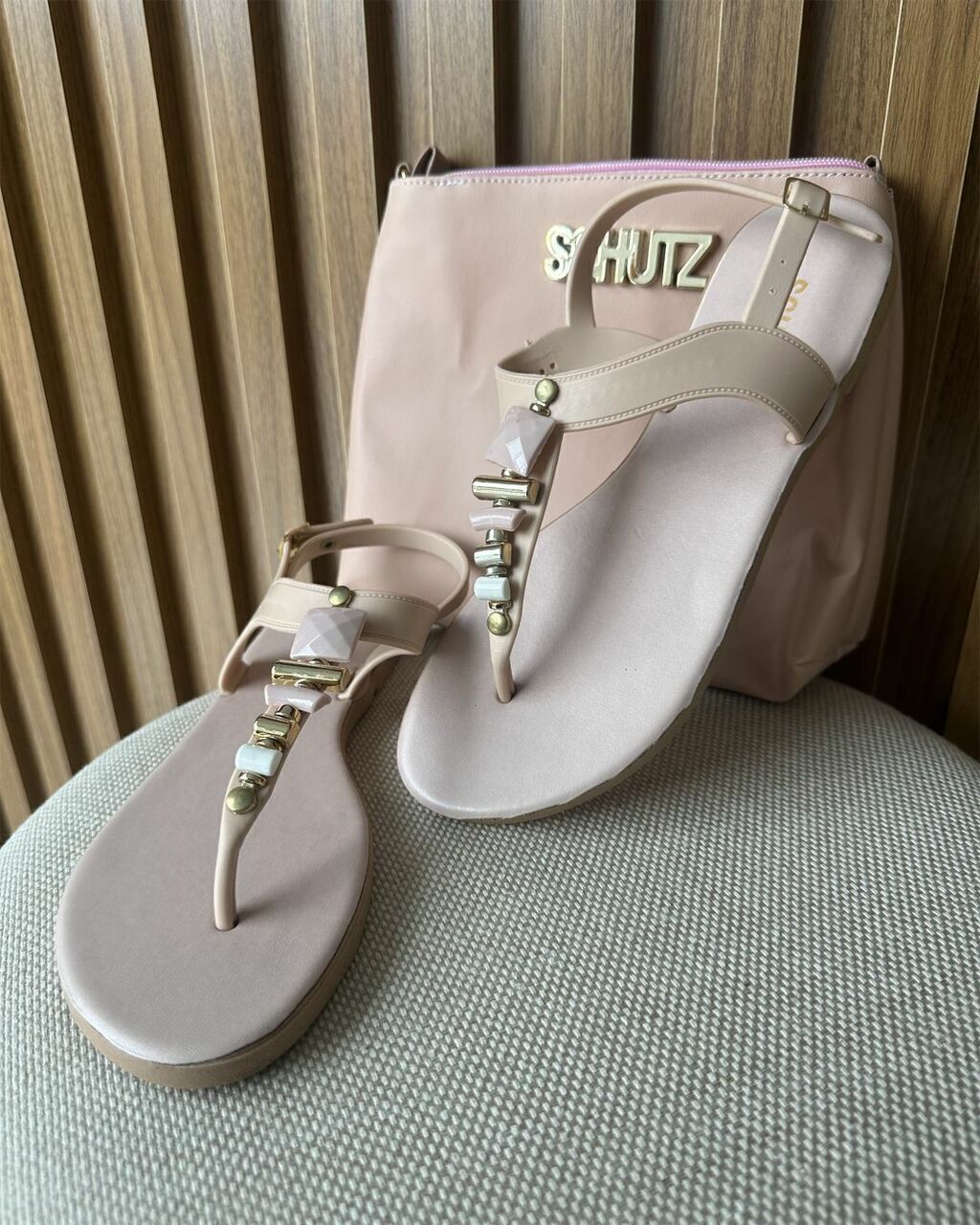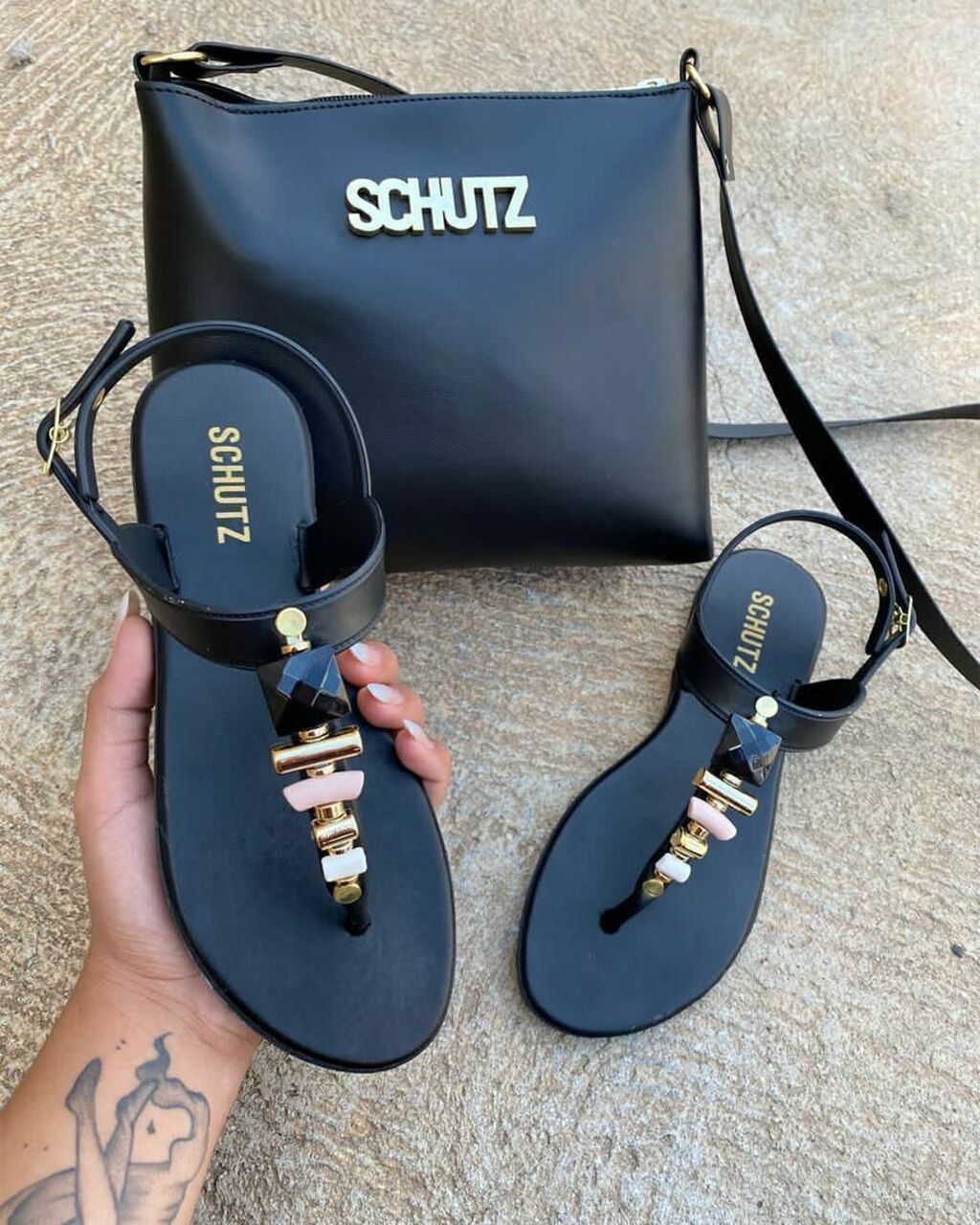 Apresentamos o elegante e versátil kit de sandália e bolsa, uma combinação perfeita de moda e funcionalidade. Com esse conjunto, você terá tudo o que precisa para brilhar em grande estilo, independentemente da ocasião. A sandália rasteira, ou as queridas rasteirinhas, são a opção para o verão complementando looks de diversos. é adornada com deslumbrantes pedras que acrescentam um toque de elegância e sofisticação ao seu calçado personalidade imediata com a aplicação do SCHUTZ logo e o toque de charme e conforto.