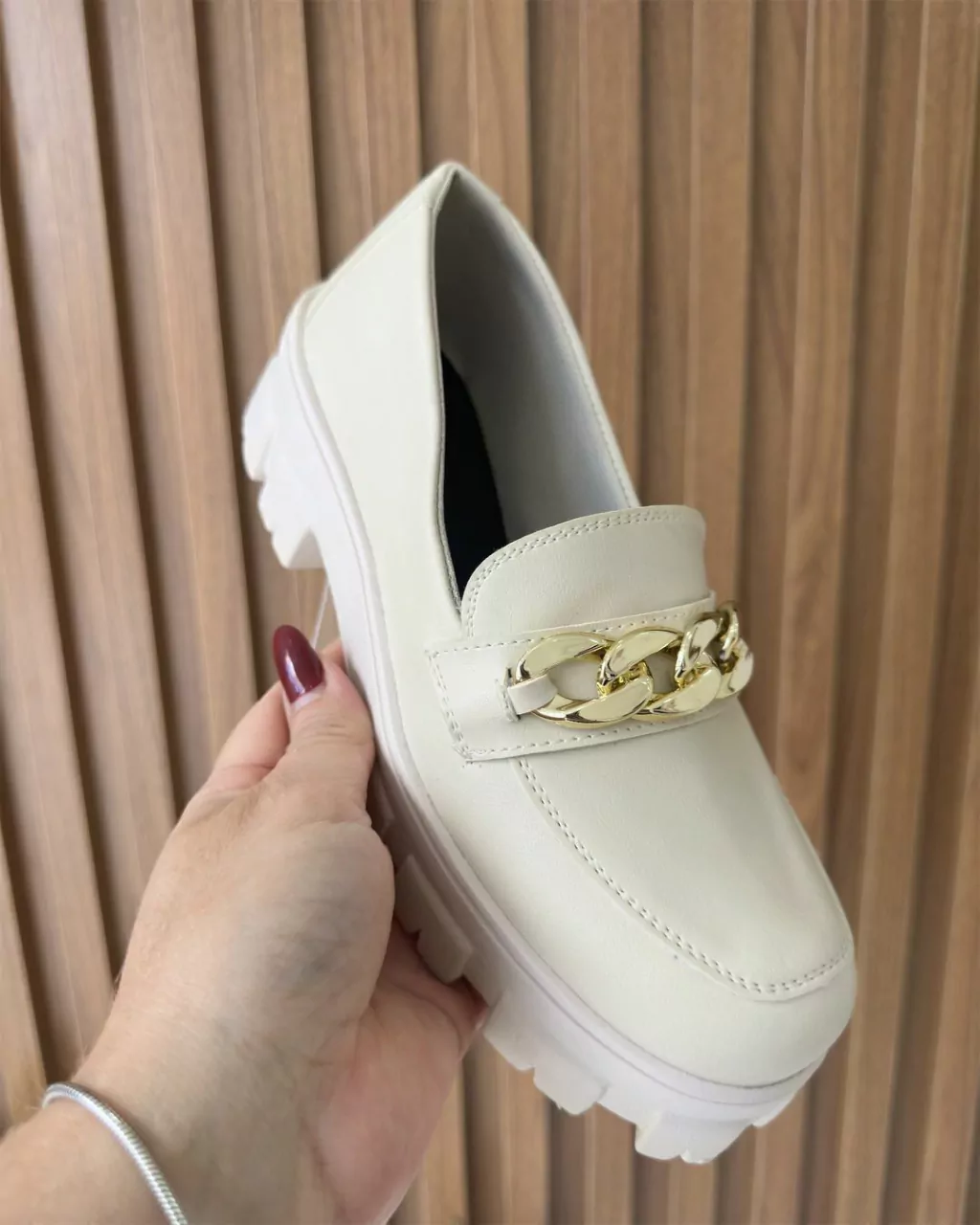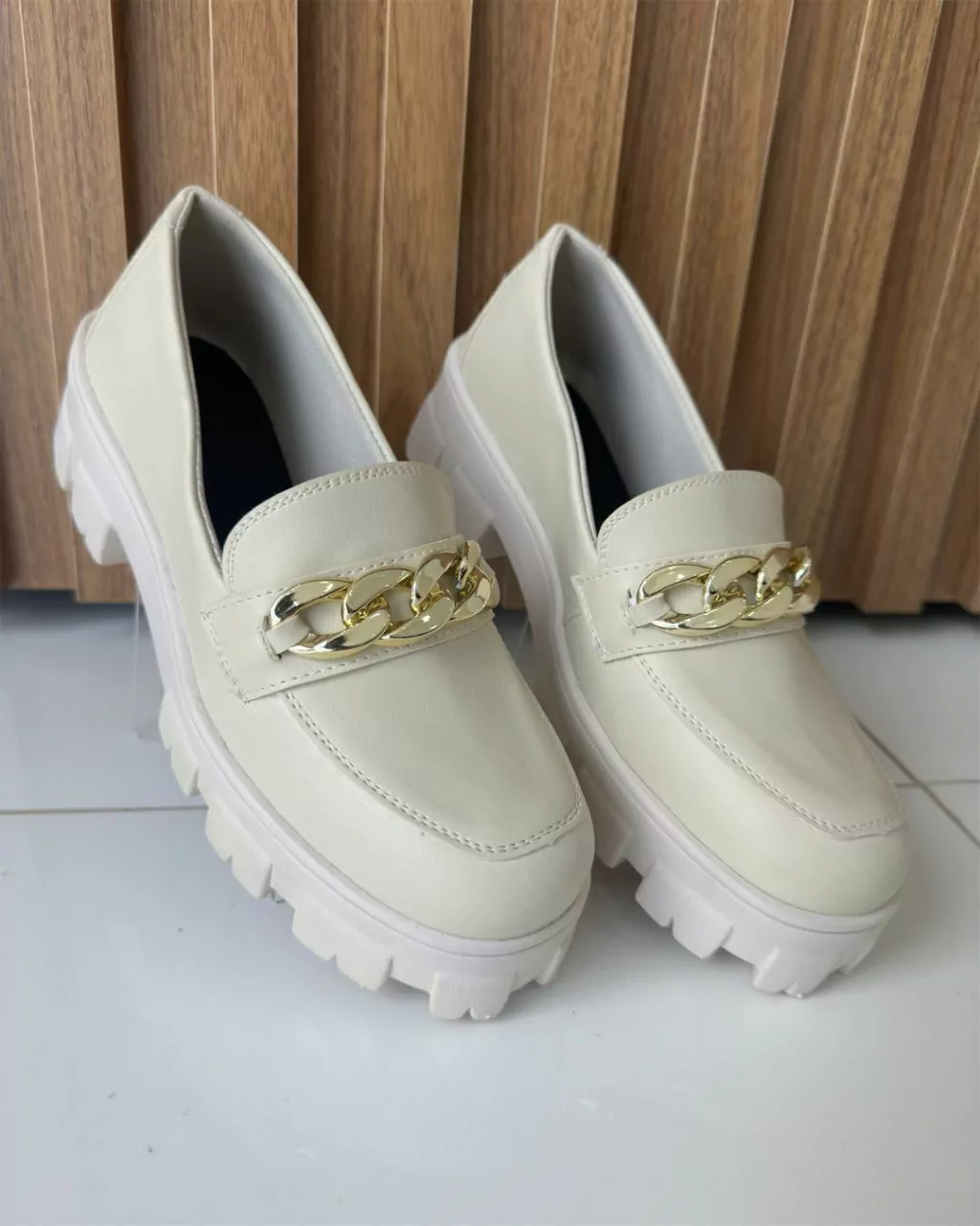 Costura Mocassim: Apresenta a clássica costura mocassim na parte frontal, que confere um visual elegante e tradicional ao calçado.