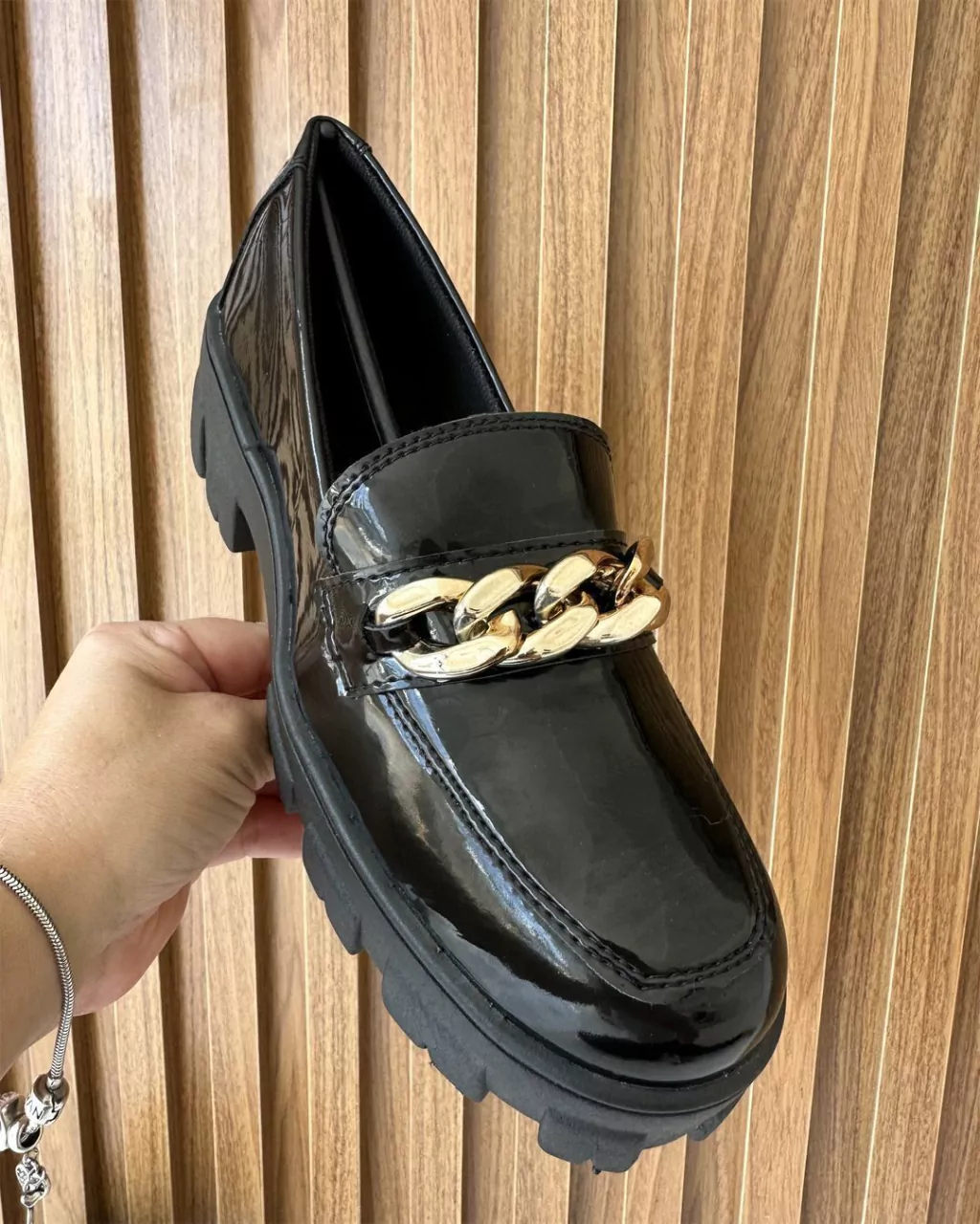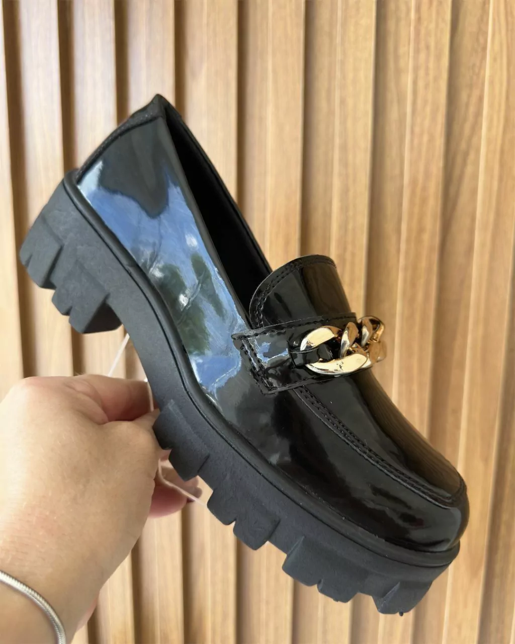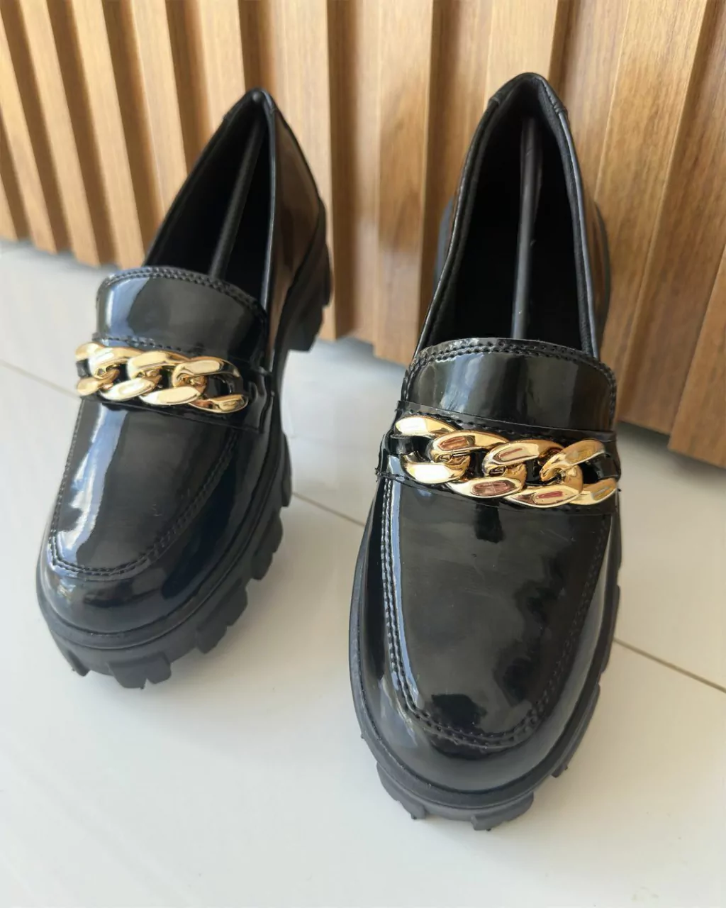 Costura Mocassim: Apresenta a clássica costura mocassim na parte frontal, que confere um visual elegante e tradicional ao calçado.