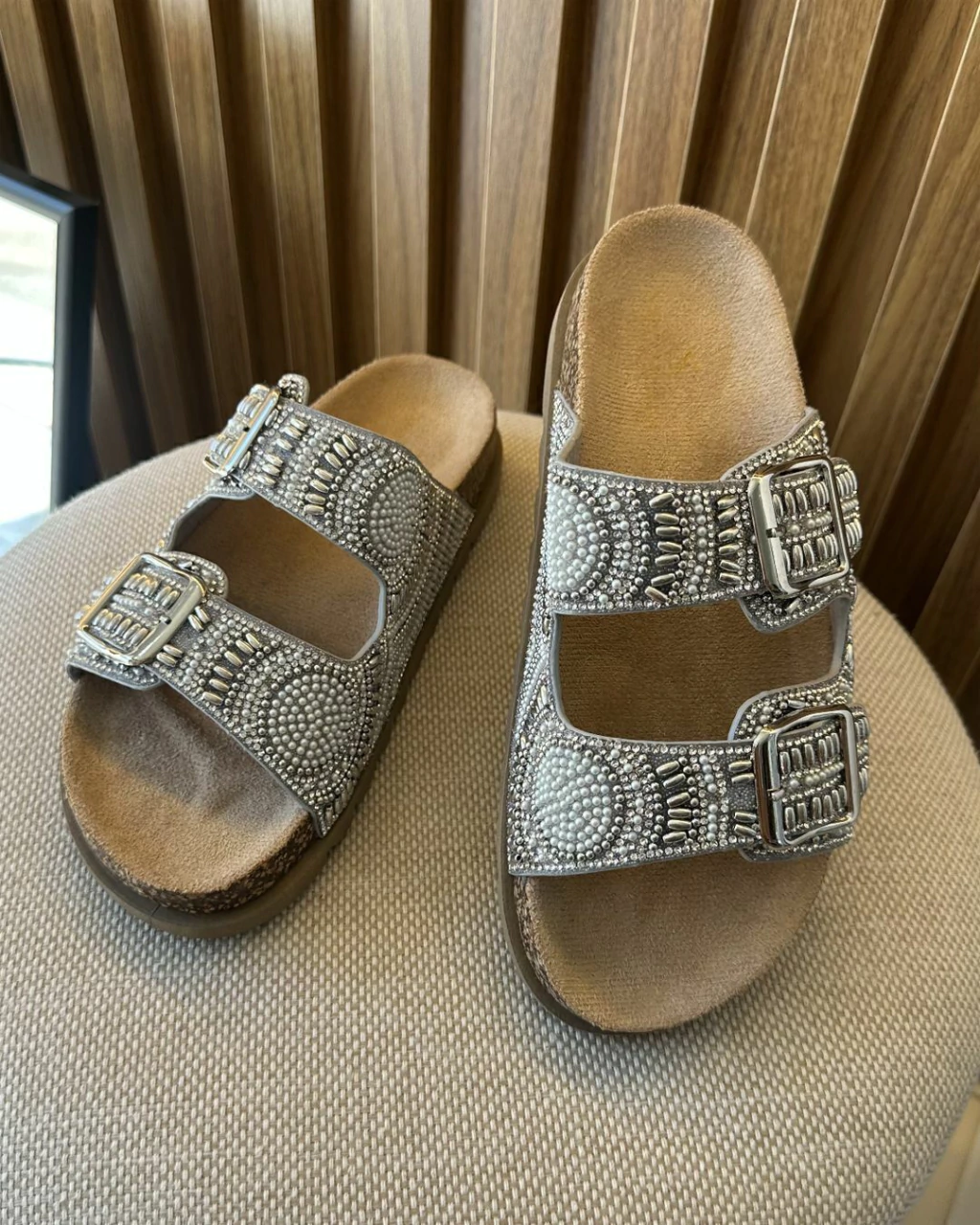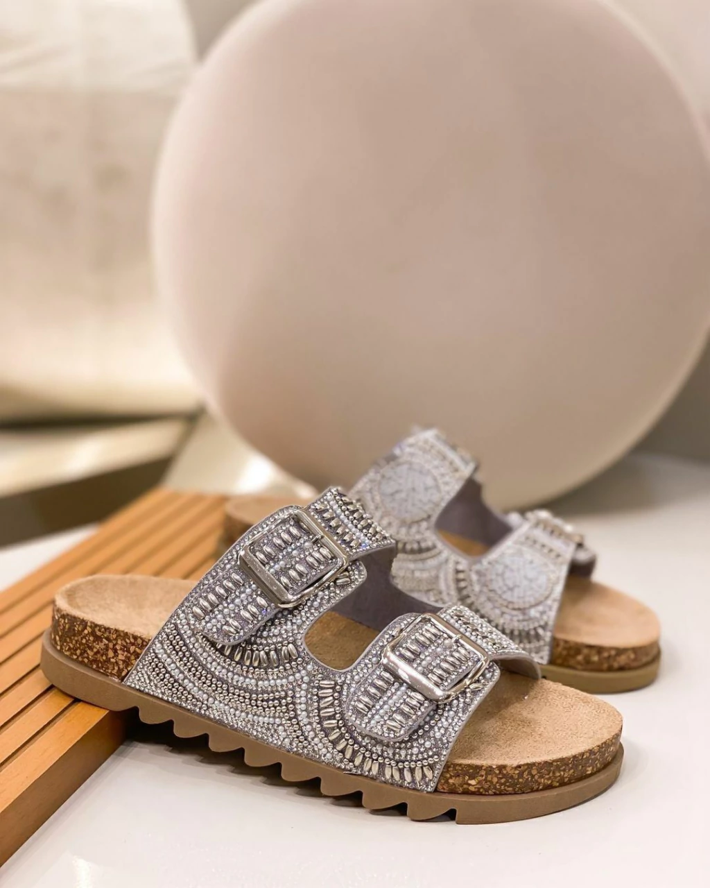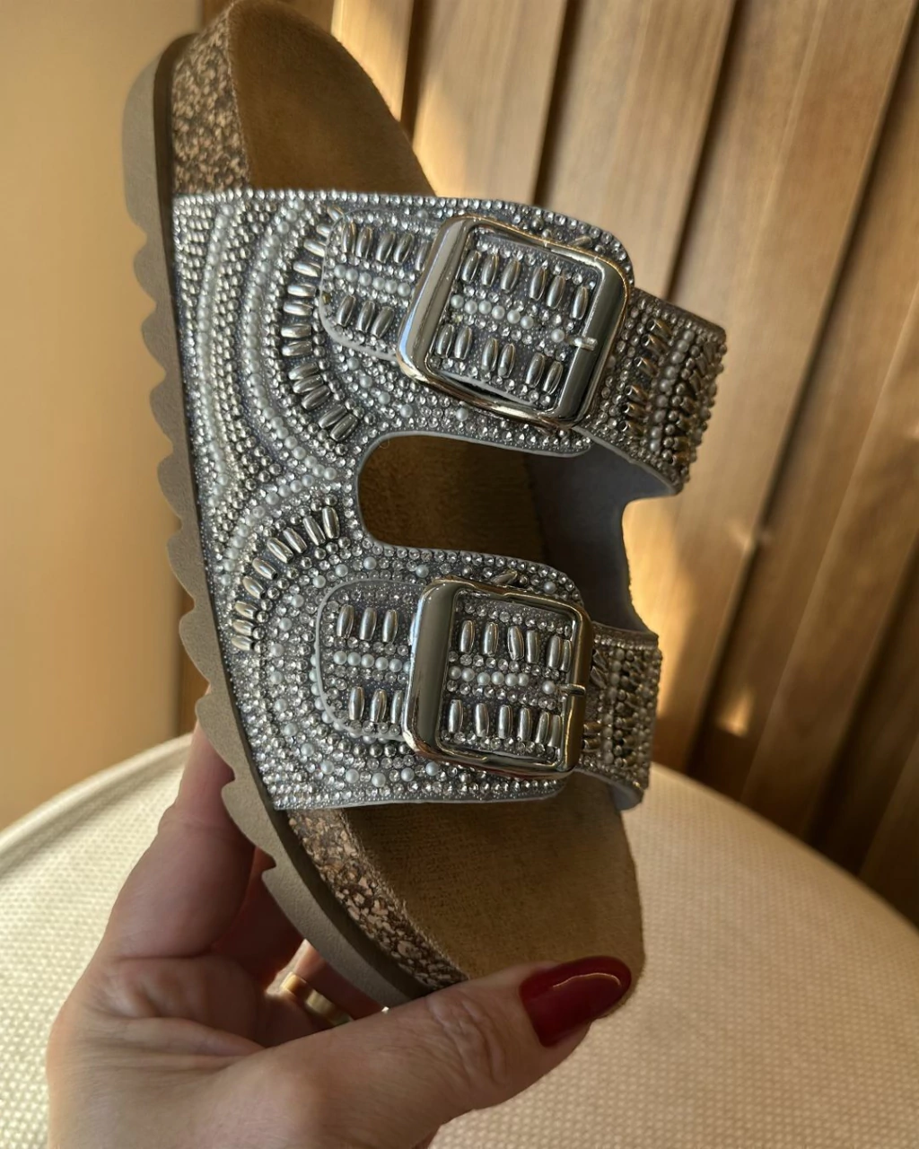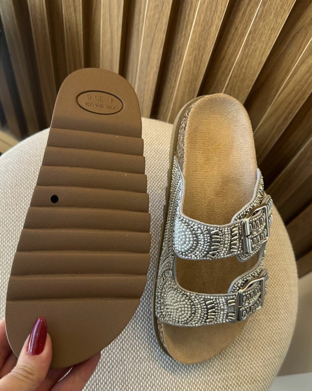 Uma verdadeira joia para os seus pés! Esta Papete Birken Fashion é trabalhada artesanalmente com pedrarias, proporcionando um brilho único e sofisticado. O salto de 3 cm garante elegância com conforto, enquanto o solado em borracha oferece estabilidade e segurança. Internamente, o acabamento aveludado proporciona uma sensação suave ao caminhar. Com ajuste especial, é perfeita para quem possui pés mais gordinhos, garantindo um encaixe confortável e personalizado. Ideal para momentos que pedem estilo e autenticidade.
