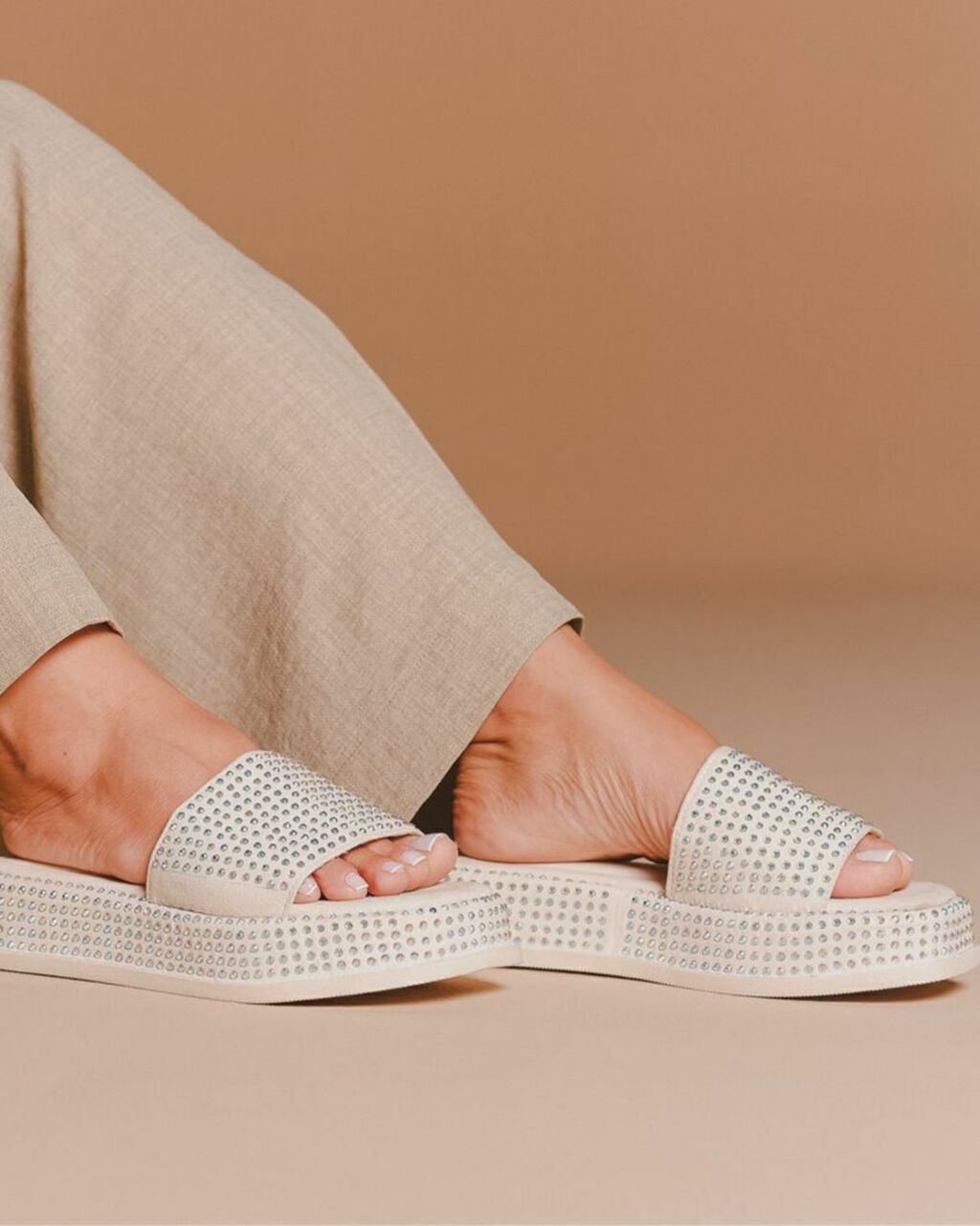 A Papete Flatform Savannah é uma verdadeira joia para os pés. Com sua exuberante decoração em pedraria, ela adiciona um toque de glamour a qualquer look. Seu design elegante e confortável torna-a perfeita para diversas ocasiões, desde um passeio descontraído até uma festa sofisticada. Esta papete combina estilo e conforto de forma impecável, garantindo que você brilhe em cada passo que der.