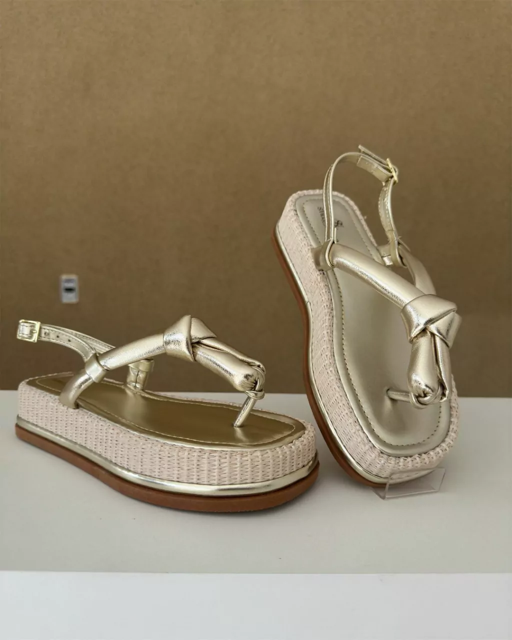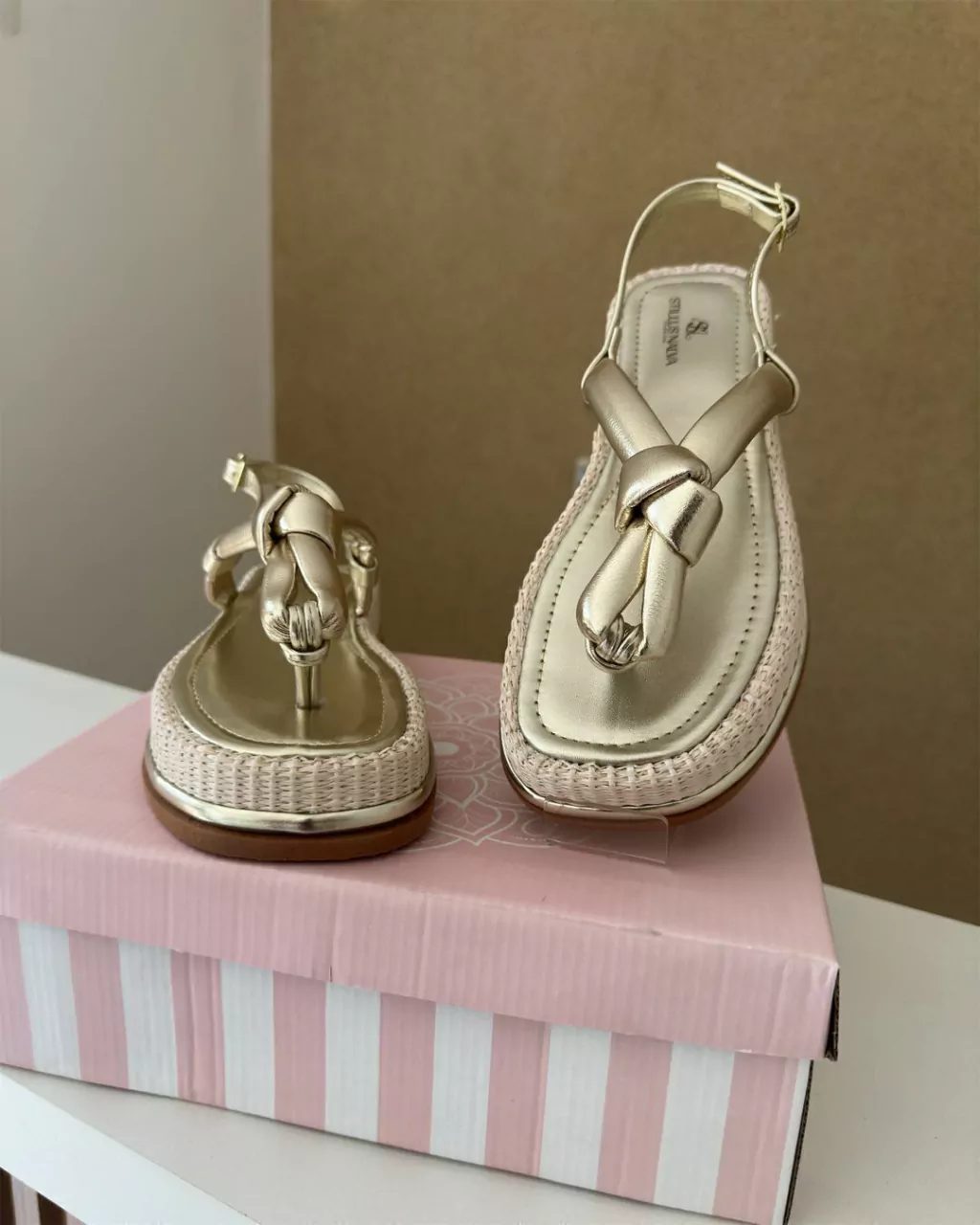 A Papete Feminina com Solado em Juta Dourada é a escolha ideal para quem adora looks despojados sem abrir mão do conforto. Ela traz um toque fashion e charmoso para suas produções, sendo versátil o suficiente para qualquer ocasião. Além de proporcionar conforto e estilo em um único produto, oferece segurança ao caminhar com sua sola antiderrapante. Aposte nessa papete para um visual moderno e confortável!