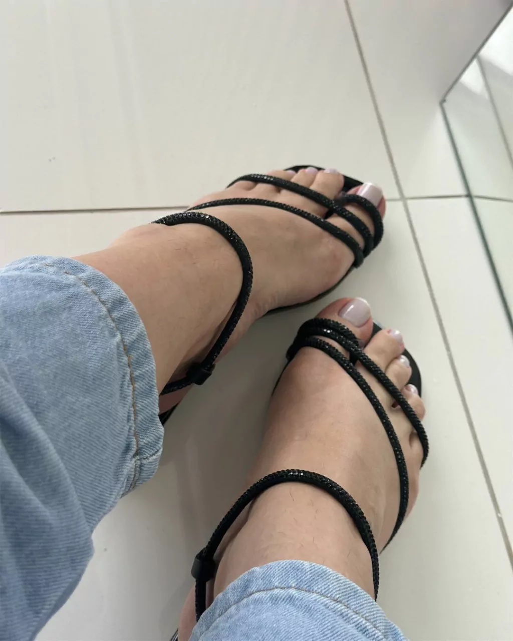 Rasteira preta com ajuste é uma opção versátil e confortável para qualquer ocasião. Com seu design simples e elegante, ela combina facilmente com uma variedade de looks, desde casuais até mais formais. O ajuste proporciona conforto adicional, permitindo que você adapte o calçado conforme necessário para um ajuste perfeito. O preto clássico confere um toque de sofisticação, enquanto a praticidade da rasteira torna-a ideal para uso durante todo o dia. Seja para um passeio descontraído ou um compromisso importante, esta sandália é uma escolha prática e estilosa.