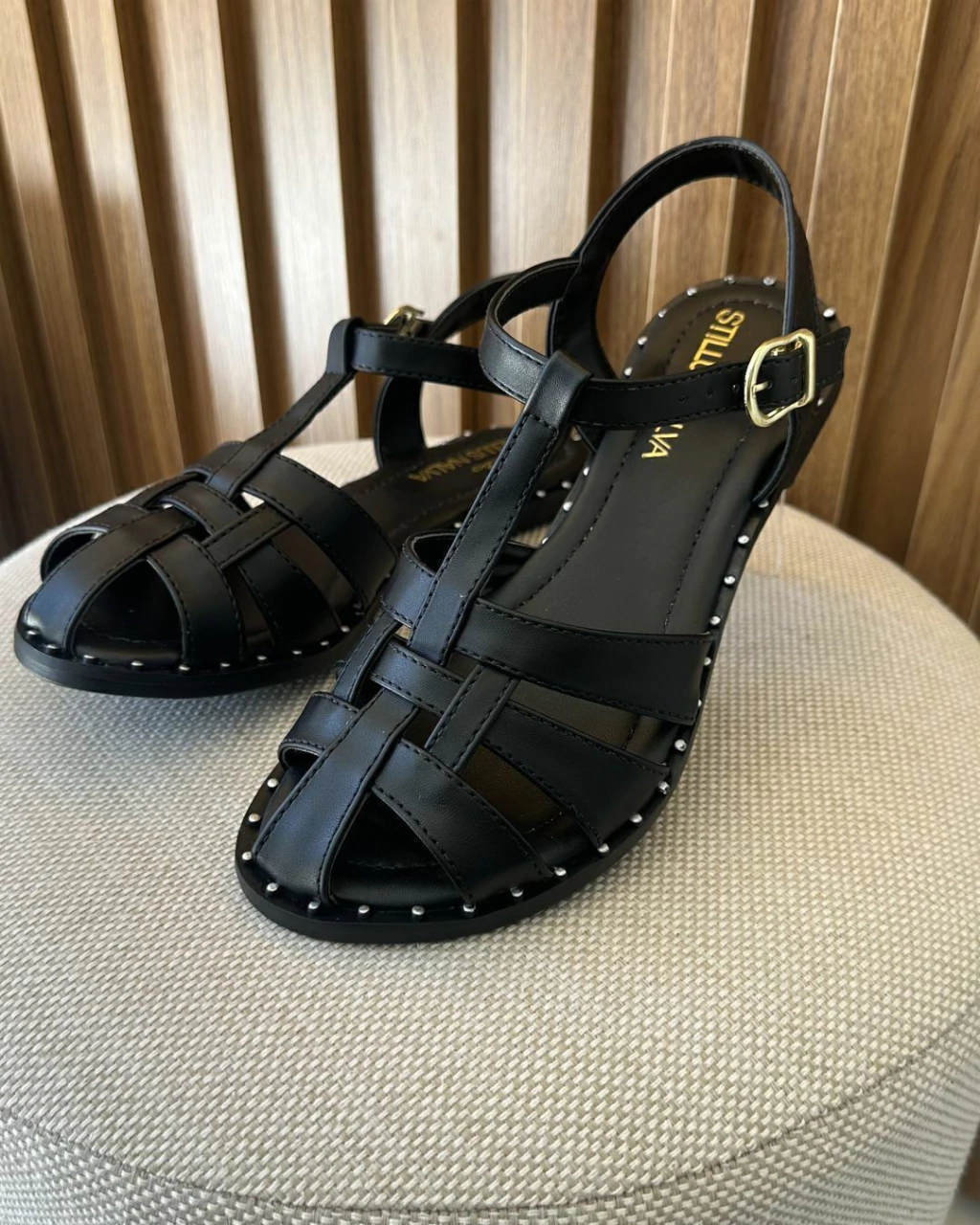 A Rasteira Diva Black é a combinação perfeita de conforto e elegância para o dia a dia. Com um design moderno e estiloso, possui detalhe trançado na parte frontal e tachas aplicadas em toda a lateral, proporcionando um visual cheio de atitude. Versátil e sofisticada, é uma peça coringa no guarda-roupa feminino, ideal para mulheres que valorizam praticidade sem abrir mão do estilo. Seja para o trabalho ou momentos casuais, esta rasteirinha é a escolha certa para estar confortável e na moda.