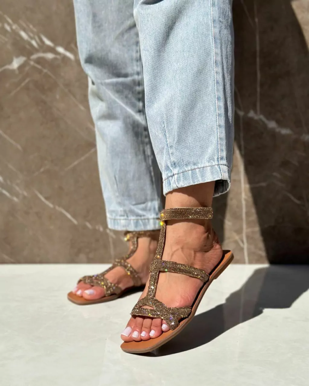 A Sandália Rasteira ELEONORA é um símbolo de elegância, com tiras acolchoadas cobertas com strass que adicionam um toque sofisticado, solado antiderrapante e fecho de velcro ajustável para se adaptar à espessura do tornozelo.