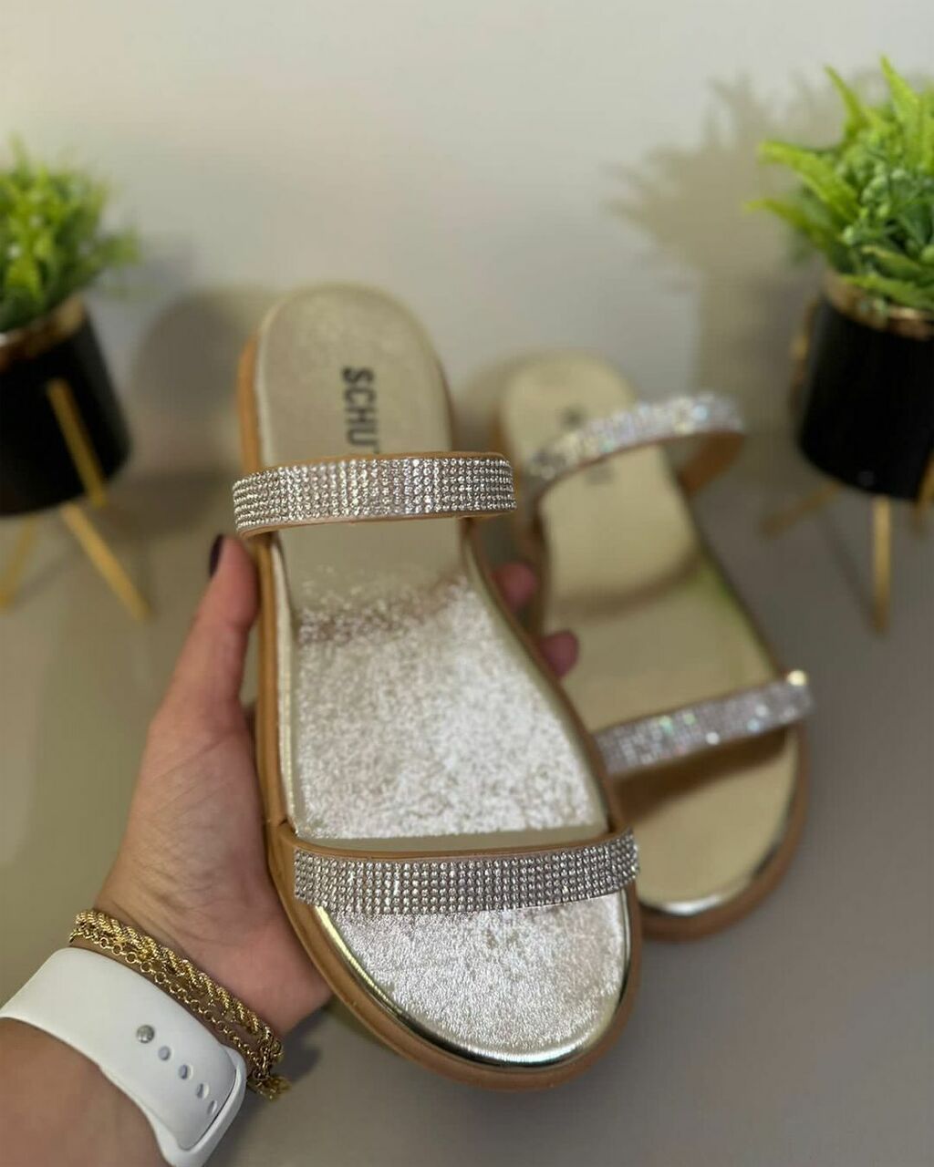 A Papete Flat Schutz com Detalhes em Strass combina elegância e conforto em um design sofisticado., está rasteira apresenta uma base plana que garante conforto durante todo o dia. Os detalhes em strass adicionam um toque de brilho e glamour, tornando-a perfeita para ocasiões especiais ou para adicionar um toque de sofisticação ao seu look casual. Ideal para quem busca um calçado versátil que une estilo e praticidade.