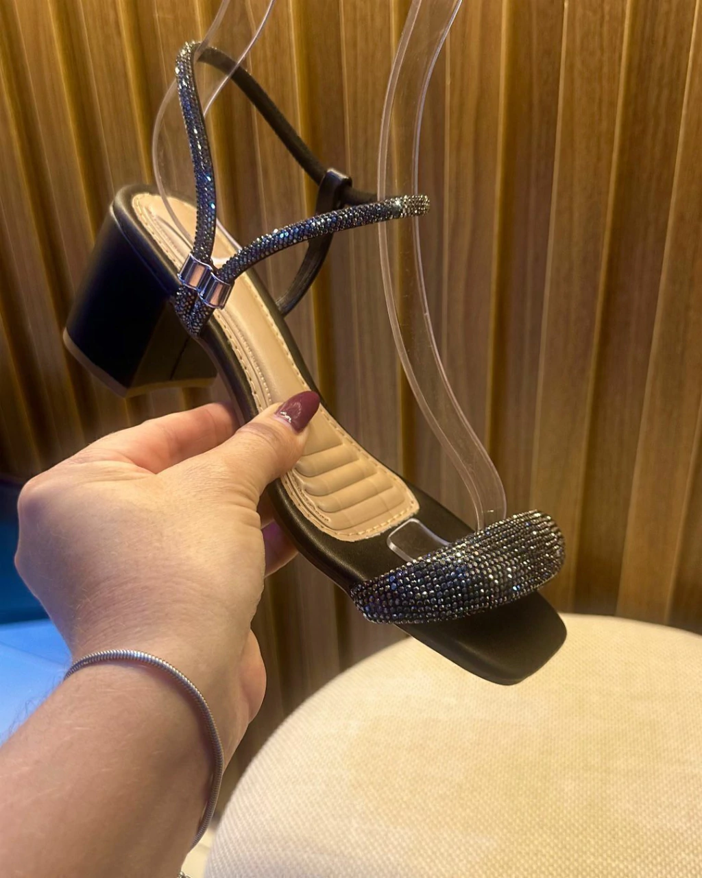 Aposte na elegância e no conforto da Sandália com Salto Bloco 6,5 cm na cor preta, modelo Bananinha. Suas tiras delicadas com aplicação de strass no peito do pé garantem um toque de brilho moderno e sofisticado. Com design curvado que abraça os pés, proporciona um ajuste confortável e seguro. O salto bloco confere estabilidade ao caminhar, enquanto o solado macio e anatômico oferece máximo conforto para uso prolongado. Ideal para compor looks elegantes e versáteis, seja para eventos especiais ou ocasiões casuais com um toque glamoroso.