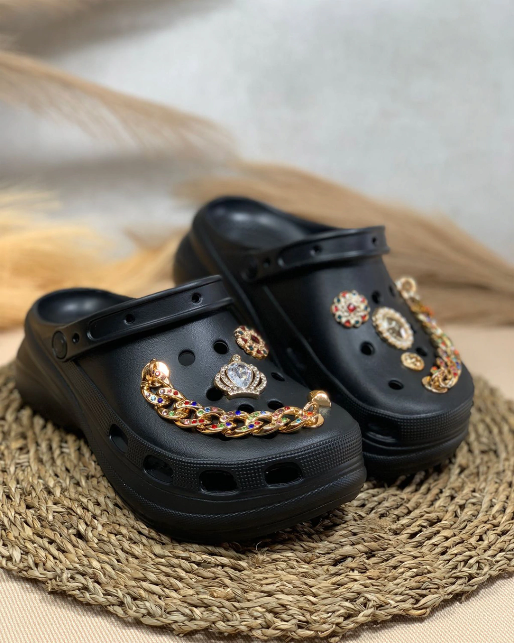 Estilo e praticidade em um só calçado! A sandália Crocs Plataforma Confort foi desenvolvida com solado em EVA superleve, proporcionando amortecimento e conforto durante todo o dia. O design moderno em plataforma garante um visual despojado e cheio de atitude, enquanto os bottons personalizados adicionam um toque divertido e único ao look.