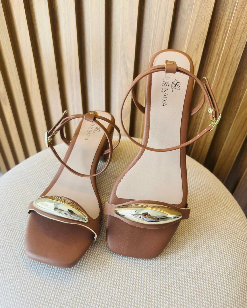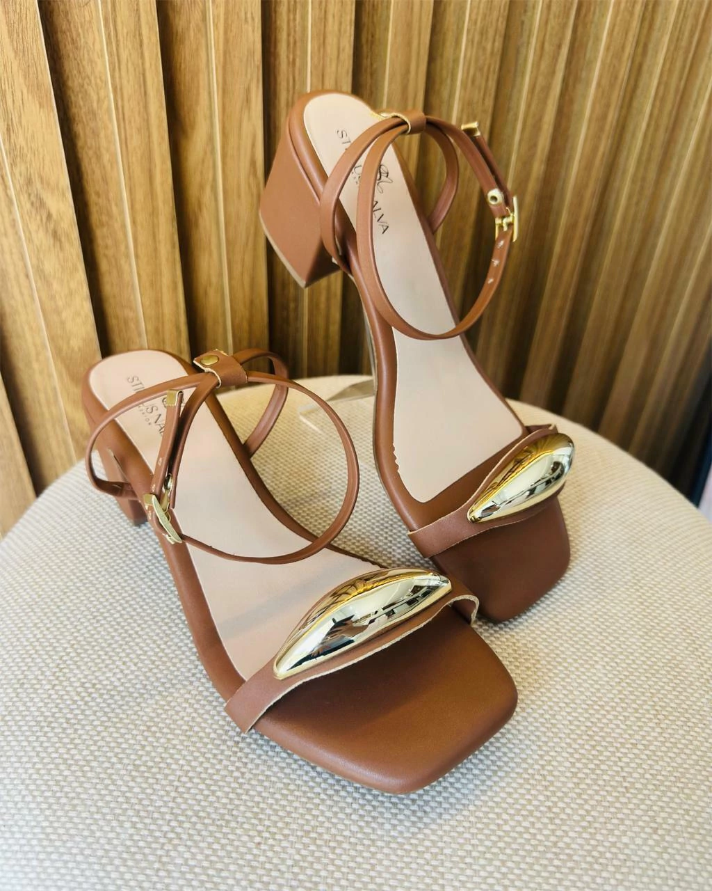 Seu salto estruturado oferece estabilidade ao caminhar, enquanto as tiras e acabamentos cuidadosamente desenvolvidos garantem um encaixe confortável nos pés. Seguindo a tendência dos bold accessories, essa sandália une elegância e modernidade, sendo ideal para quem busca um calçado versátil e refinado para diversas ocasiões.