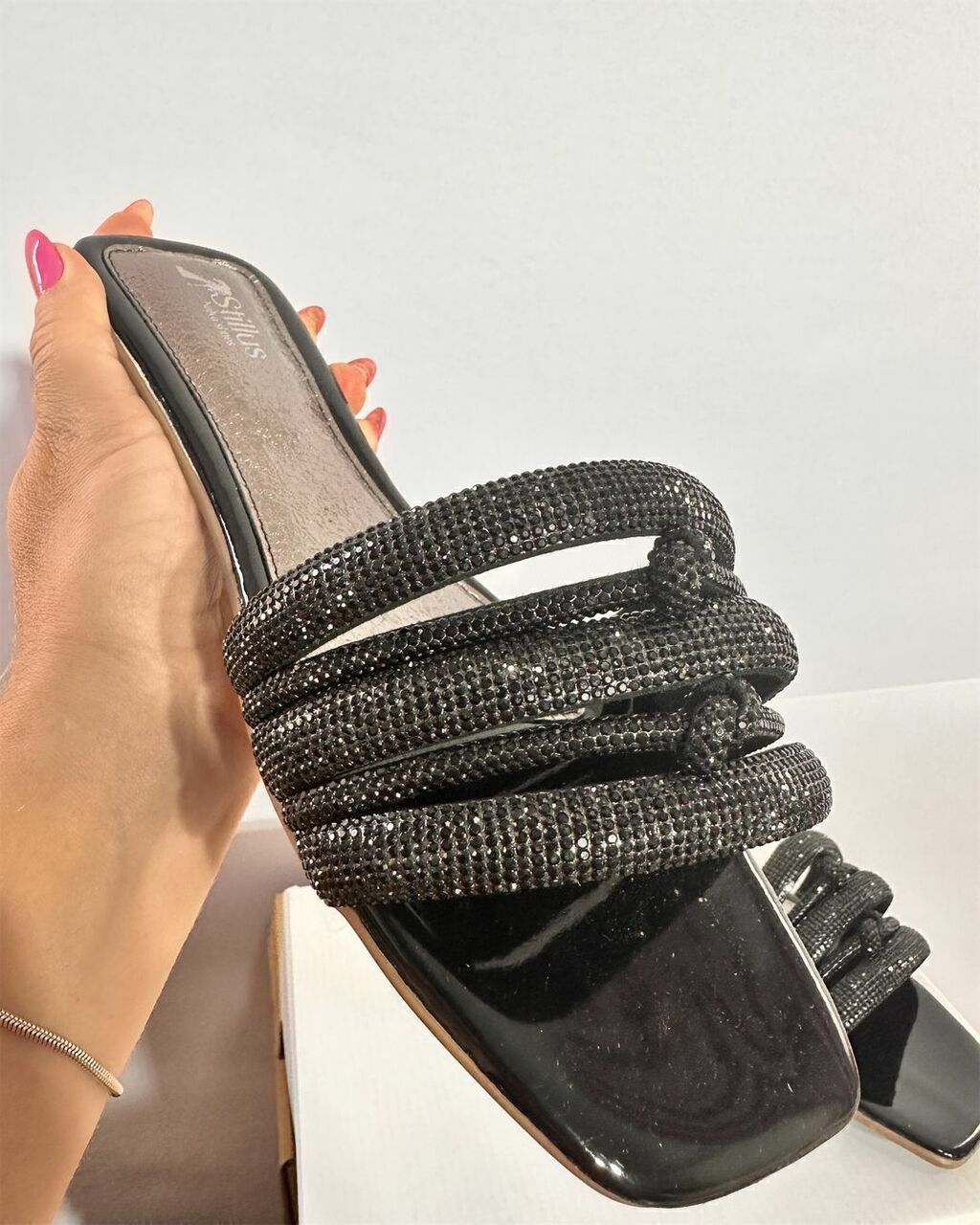A sandália rasteira em verniz preta, com um nó no meio do peito do pé, é uma peça elegante e contemporânea que combina estilo e conforto. O acabamento em verniz confere um brilho sutil ao calçado, adicionando um toque de sofisticação ao visual. O detalhe do nó no centro do peito do pé adiciona um charme adicional, criando um ponto focal interessante no design da sandália. O preto é uma cor versátil que combina facilmente com uma variedade de roupas, tornando esta sandália uma escolha versátil para diversas ocasiões.