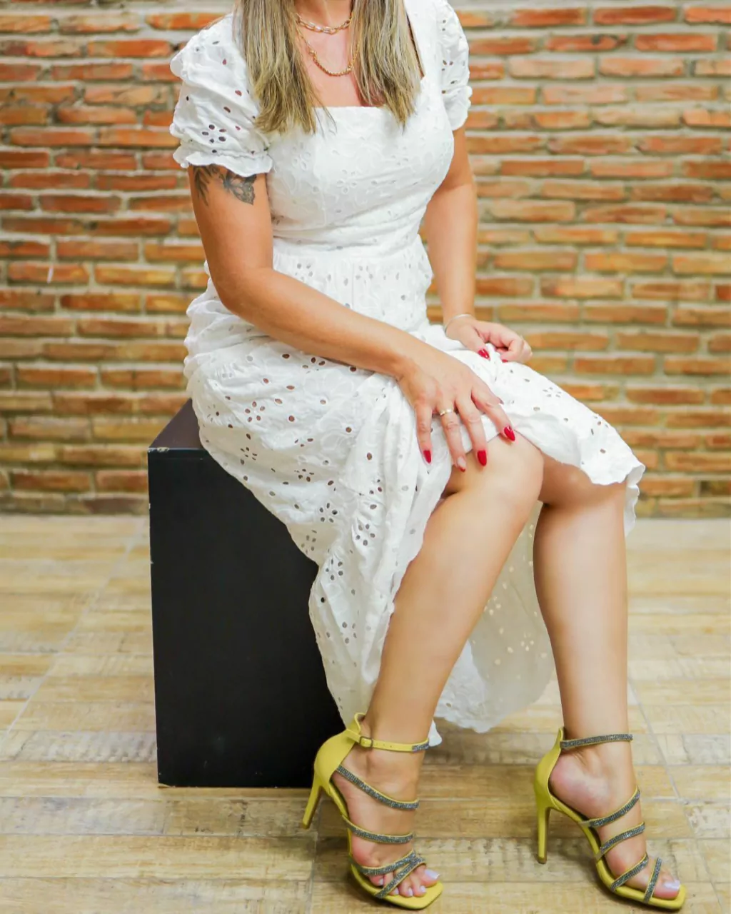 Sandália de salto de 9cm é a definição do glamour e da elegância. Suas correias delicadas são adornadas com brilhantes strass, que capturam a luz de forma exuberante, adicionando um toque de sofisticação a cada passo. Feita com materiais de alta qualidade, a sandália não apenas oferece um design deslumbrante, mas também proporciona conforto durante todo o uso. Com seu salto elegante e acentos cintilantes, esta sandália é a escolha perfeita para eventos especiais, festas ou qualquer ocasião que exija um toque de glamour e estilo sofisticado.