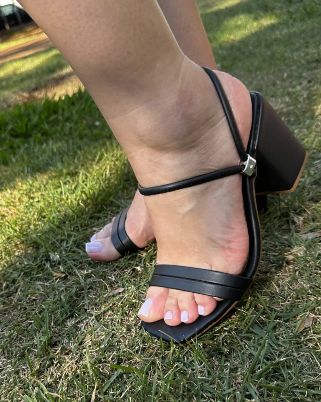A sandália de salto bloco é uma escolha elegante e moderna para adicionar um toque de glamour aos seus looks. Com seu salto robusto e estável, oferece conforto ao mesmo tempo em que proporciona altura e estilo. O acabamento na cor preta confere um brilho sutil e sofisticado, complementando uma variedade de roupas, desde vestidos de festa até jeans e camisetas para um visual mais casual chic. Seu design versátil permite que você a use em diversas ocasiões, seja para um evento especial ou para o dia a dia, adicionando um toque de sofisticação e brilho ao seu visual.