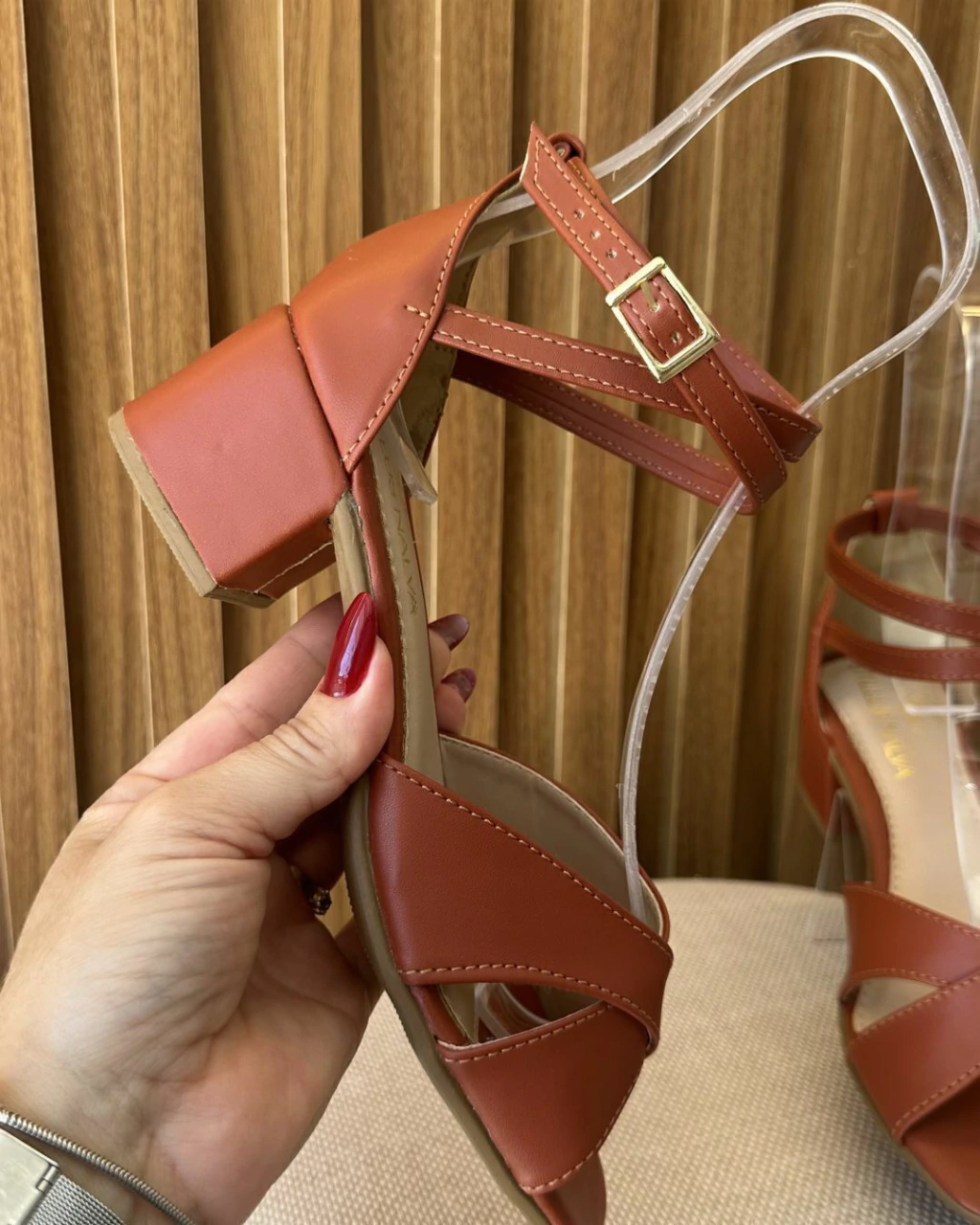 Esta sandália traz elegância e conforto em perfeita harmonia. Com salto bloco de 5 cm, proporciona estabilidade e estilo para o dia a dia. Na cor canela, é versátil e fácil de combinar com diversos looks. O detalhe da amarração no tornozelo agrega charme e personalidade, enquanto o fechamento no calcanhar garante segurança ao caminhar. A palmilha super confortável completa o design, oferecendo bem-estar para seus pés em qualquer ocasião.