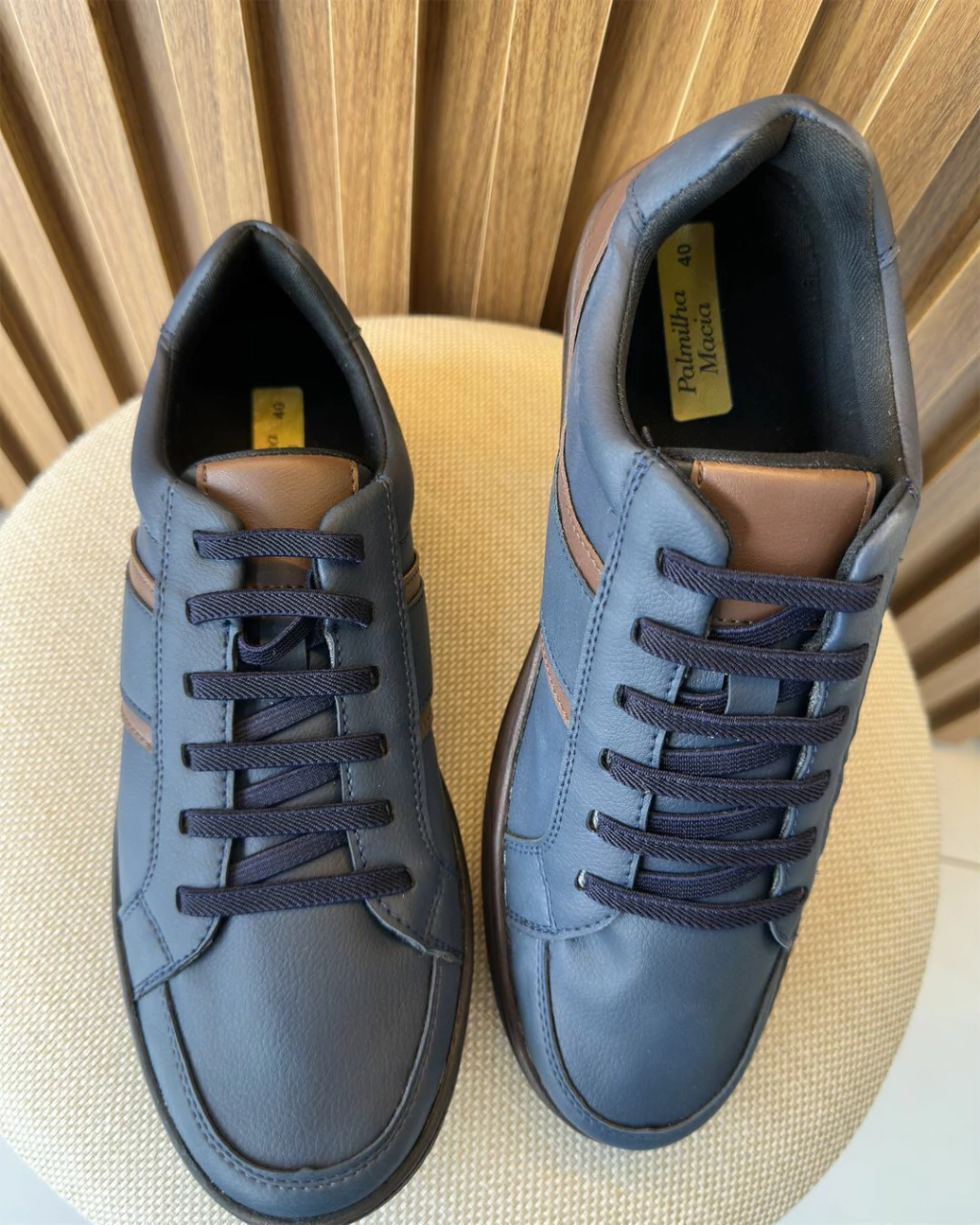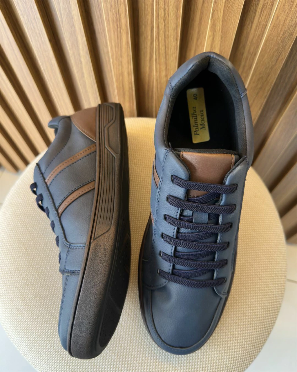Destaque de design: Detalhes em marrom no calcanhar e nas laterais – elegância com personalidade
