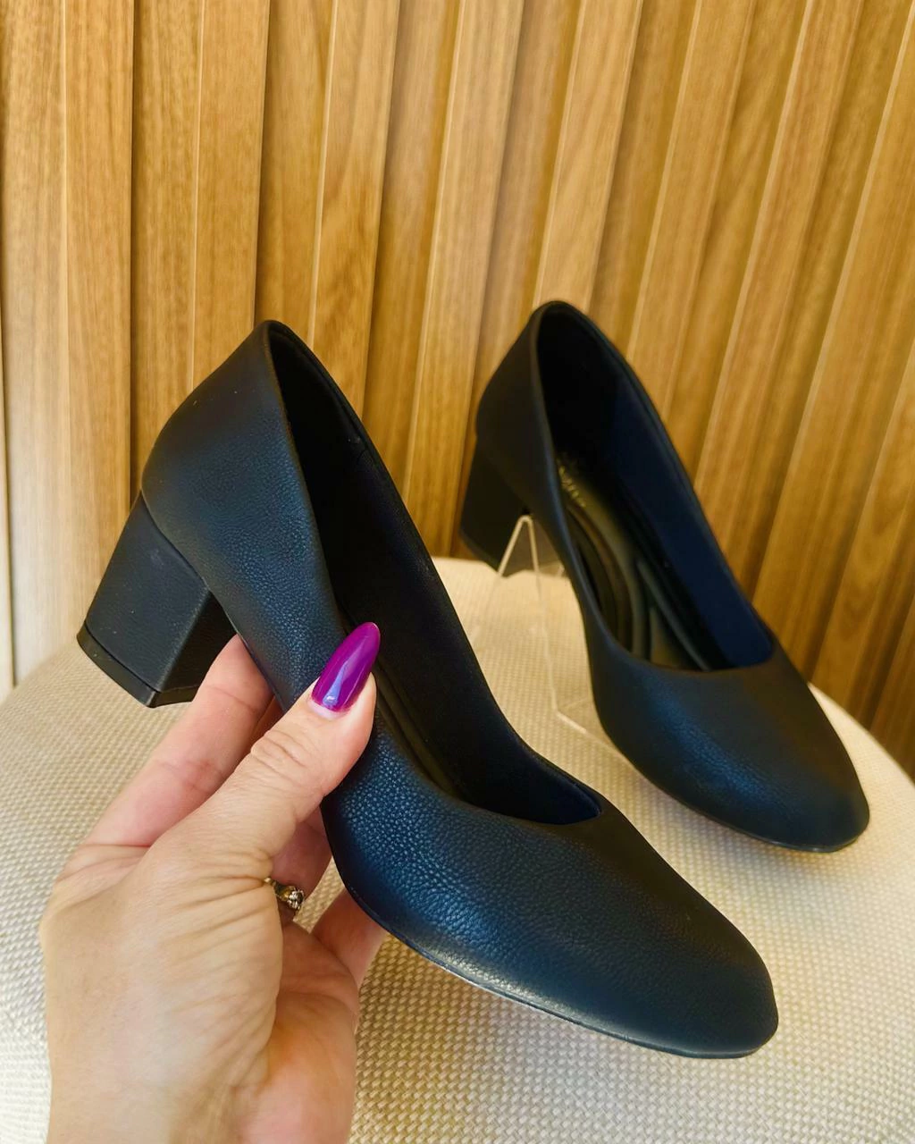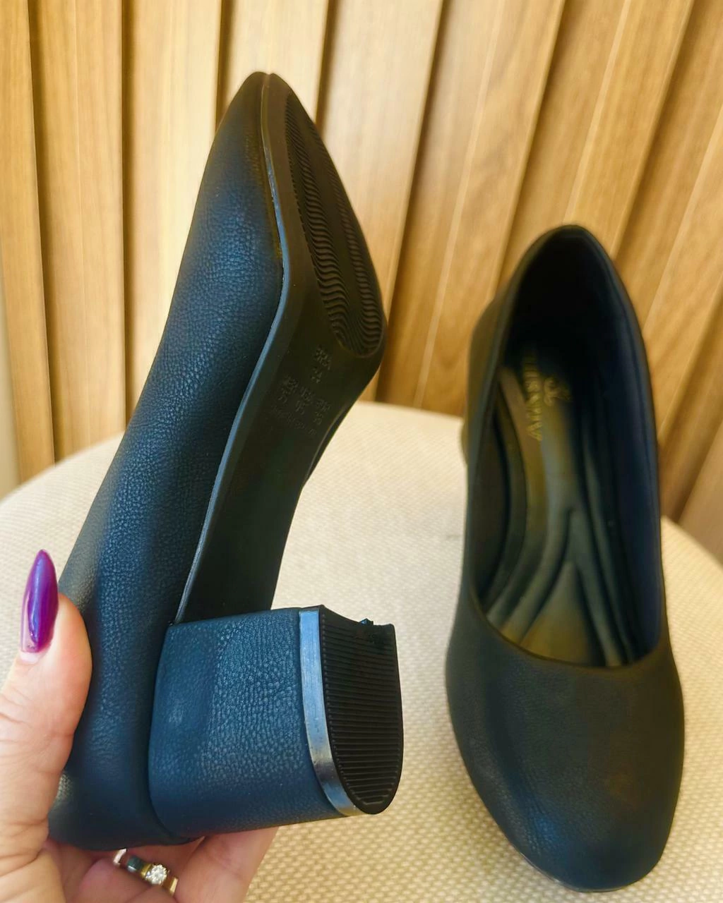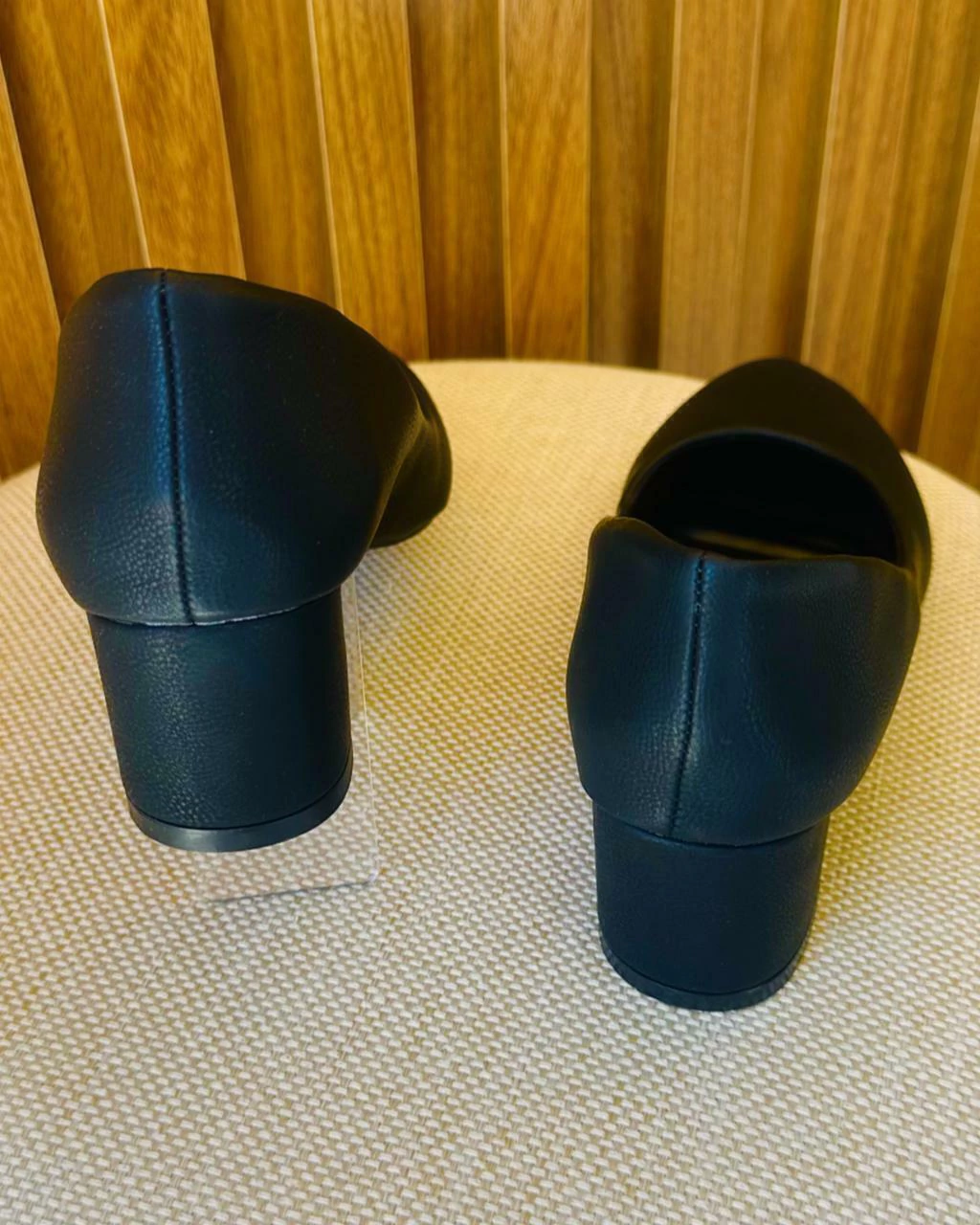 Seu salto bloco de 5cm garante conforto ao longo do dia, enquanto o solado antiderrapante oferece segurança e estabilidade ao caminhar.
