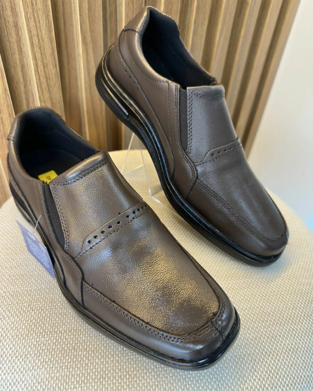 Elegante por fora e extremamente confortável por dentro, o Sapato Social Masculino Linha Confort é a escolha perfeita para quem busca sofisticação com praticidade no dia a dia. Confeccionado em couro na cor café, ele apresenta um visual clássico e versátil, ideal para ambientes formais e profissionais.