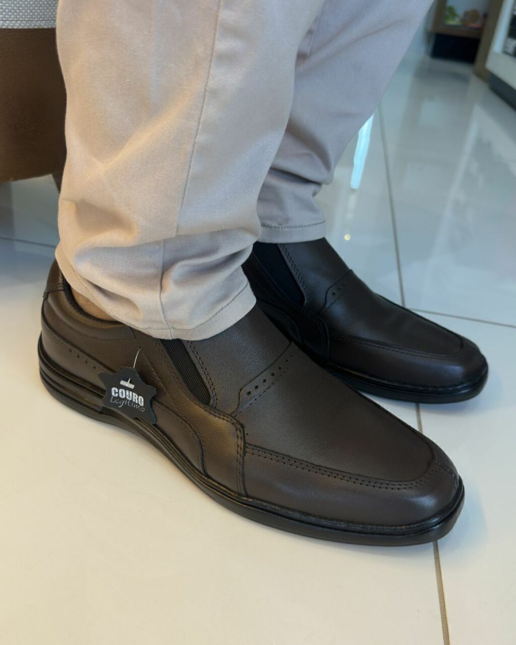 Elegante por fora e extremamente confortável por dentro, o Sapato Social Masculino Linha Confort é a escolha perfeita para quem busca sofisticação com praticidade no dia a dia. Confeccionado em couro na cor café, ele apresenta um visual clássico e versátil, ideal para ambientes formais e profissionais.