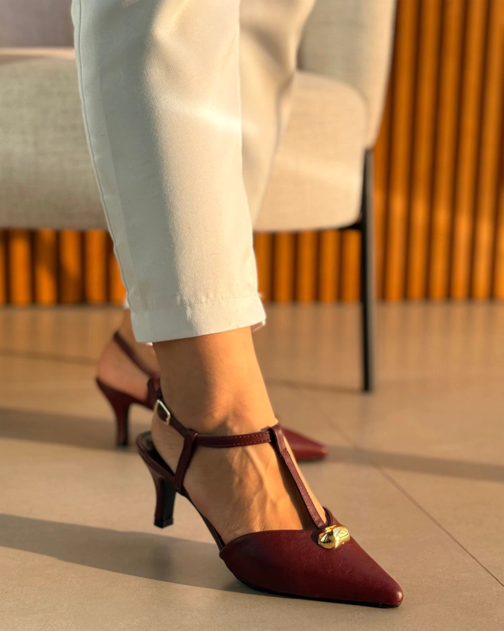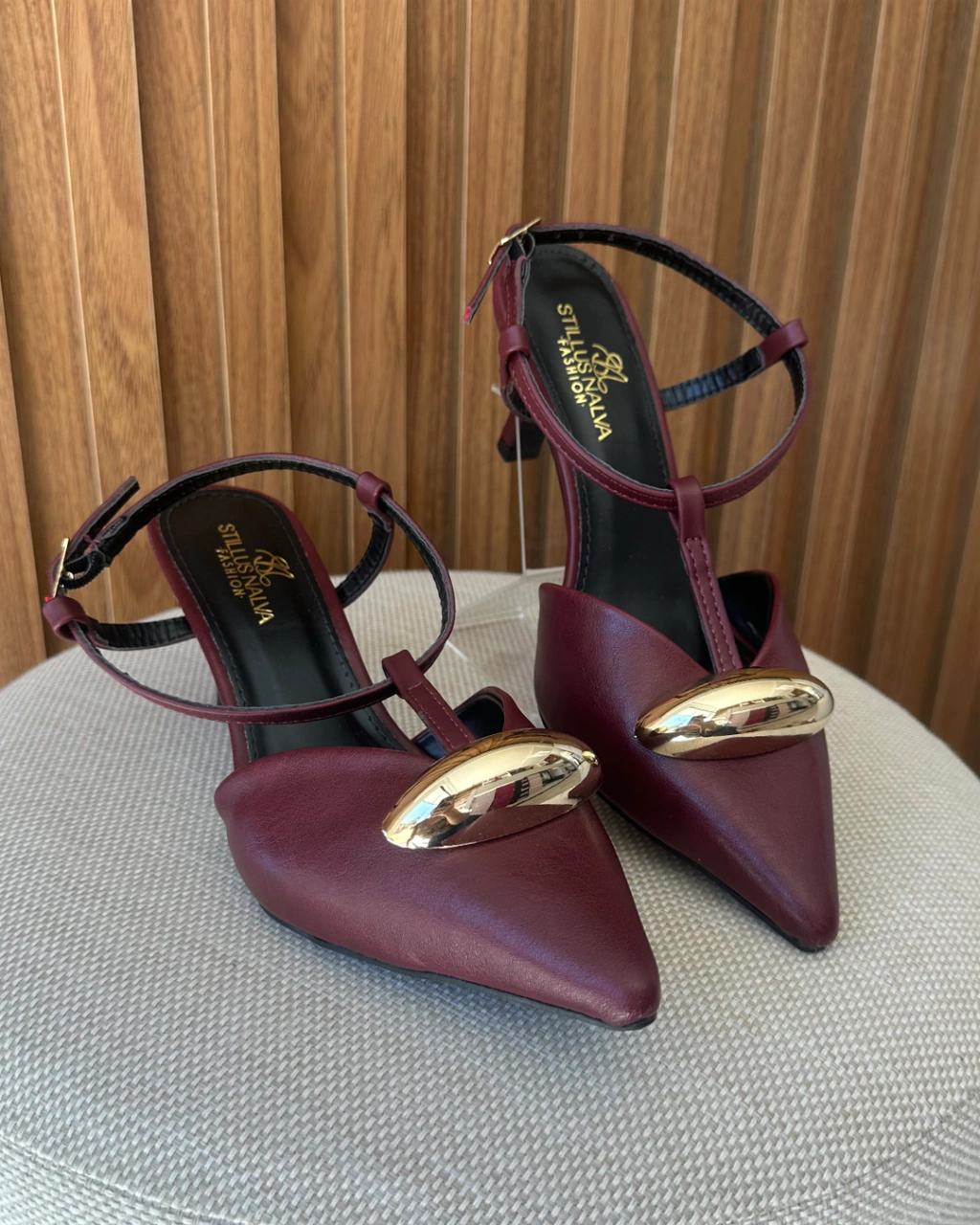 Esse modelo é a escolha perfeita para quem ama um visual sofisticado com personalidade. Com acabamento em tom marsala intenso, ele transmite charme e modernidade em cada detalhe.