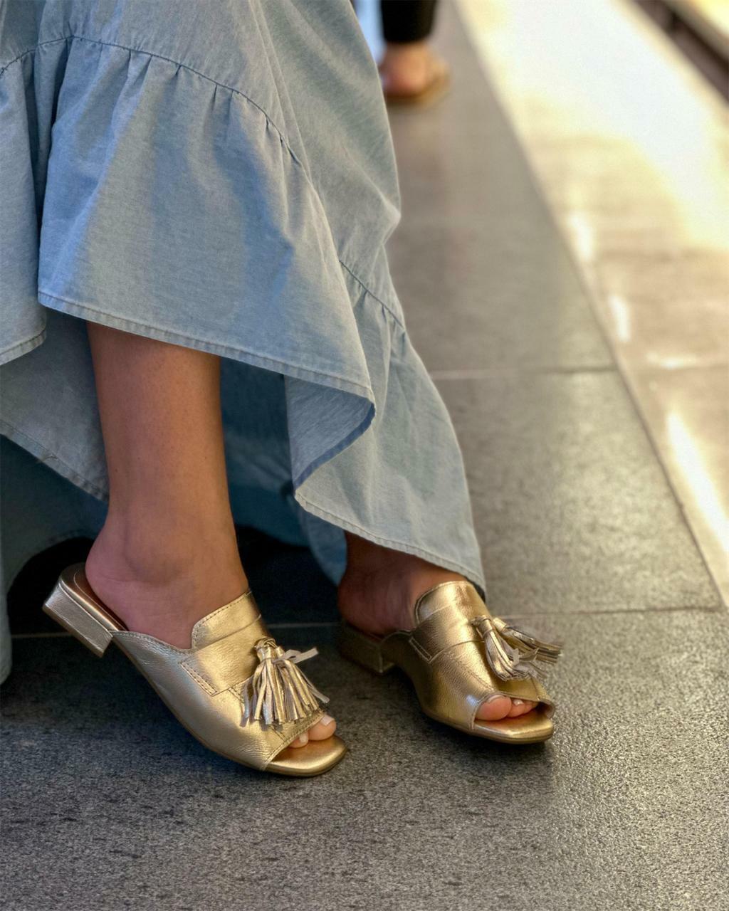 Estamos certos de que você vai amar o seu tamanco feminino de couro na cor Champanhe!