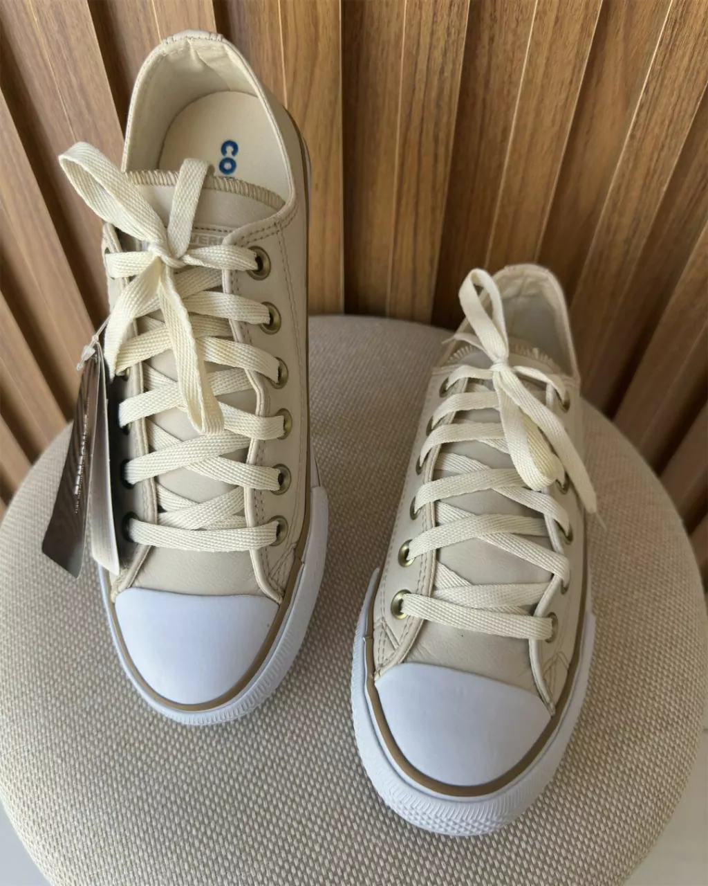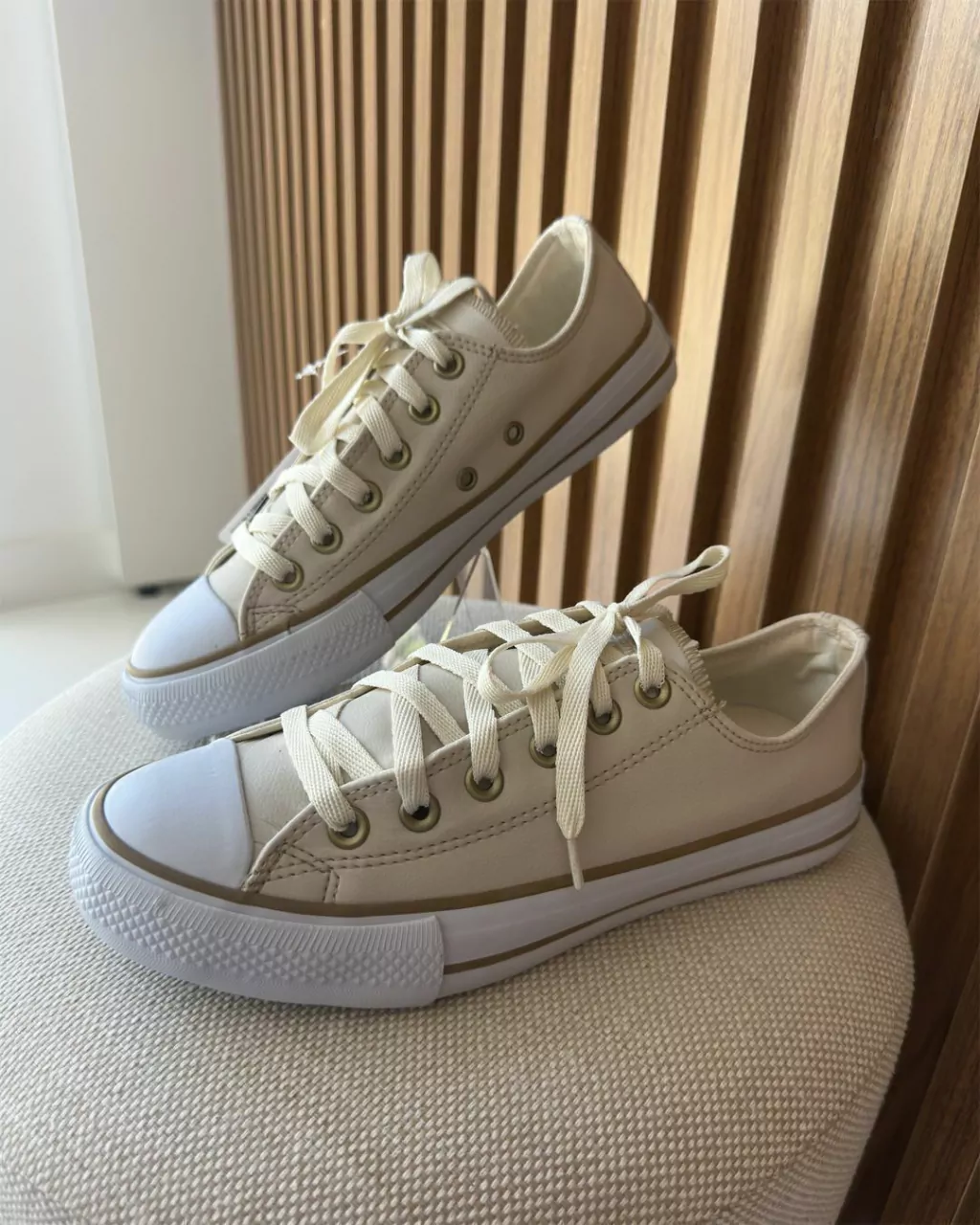 O Tênis All-Star Creme é um clássico atemporal, sinônimo de estilo e versatilidade. Ele combina um design minimalista com um visual despojado, perfeito para diversas ocasiões.