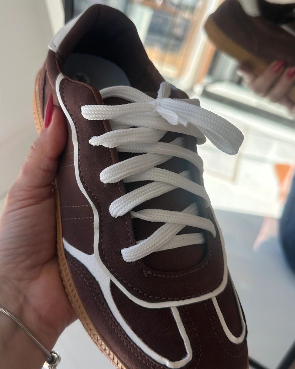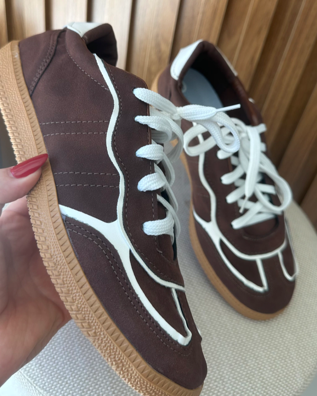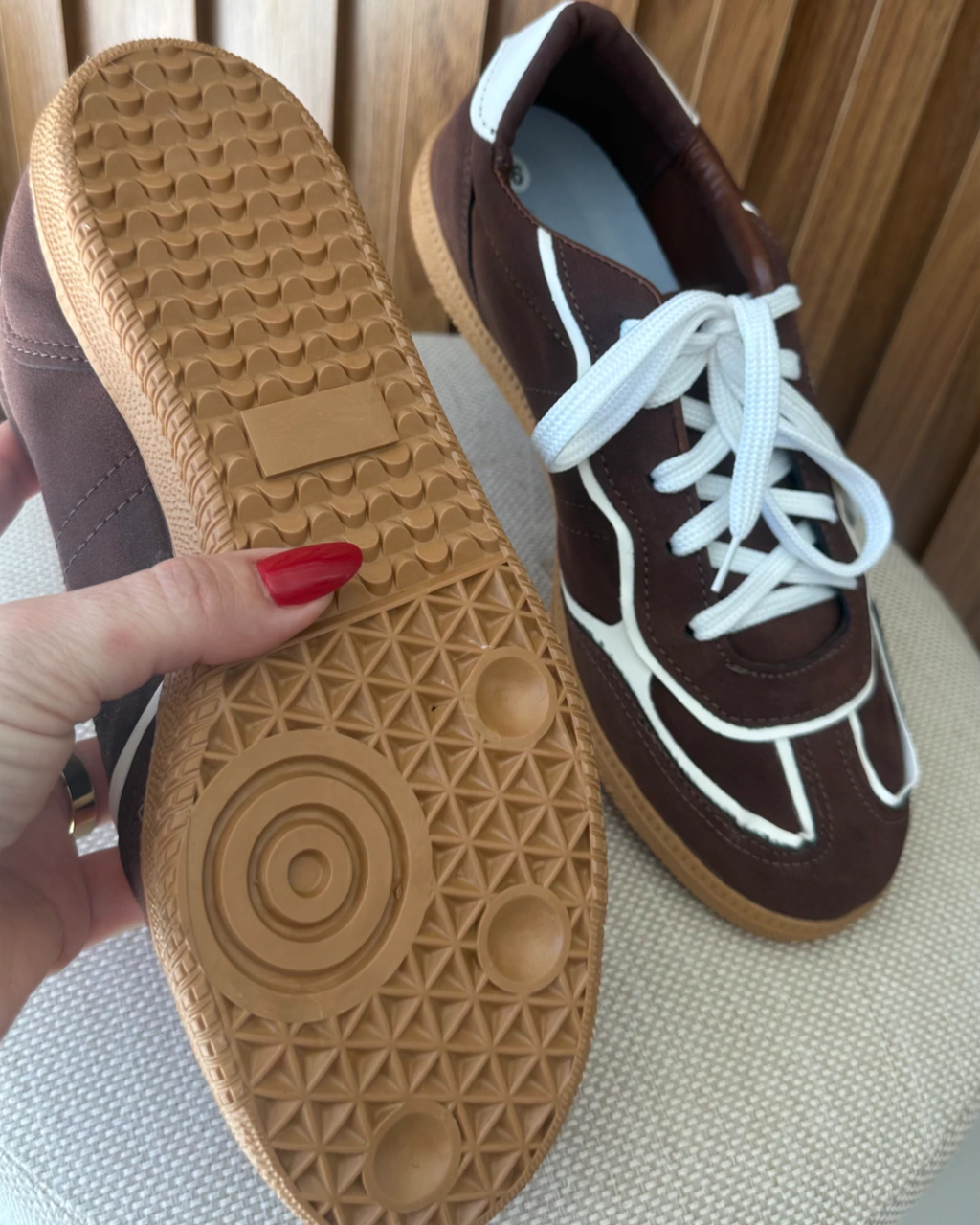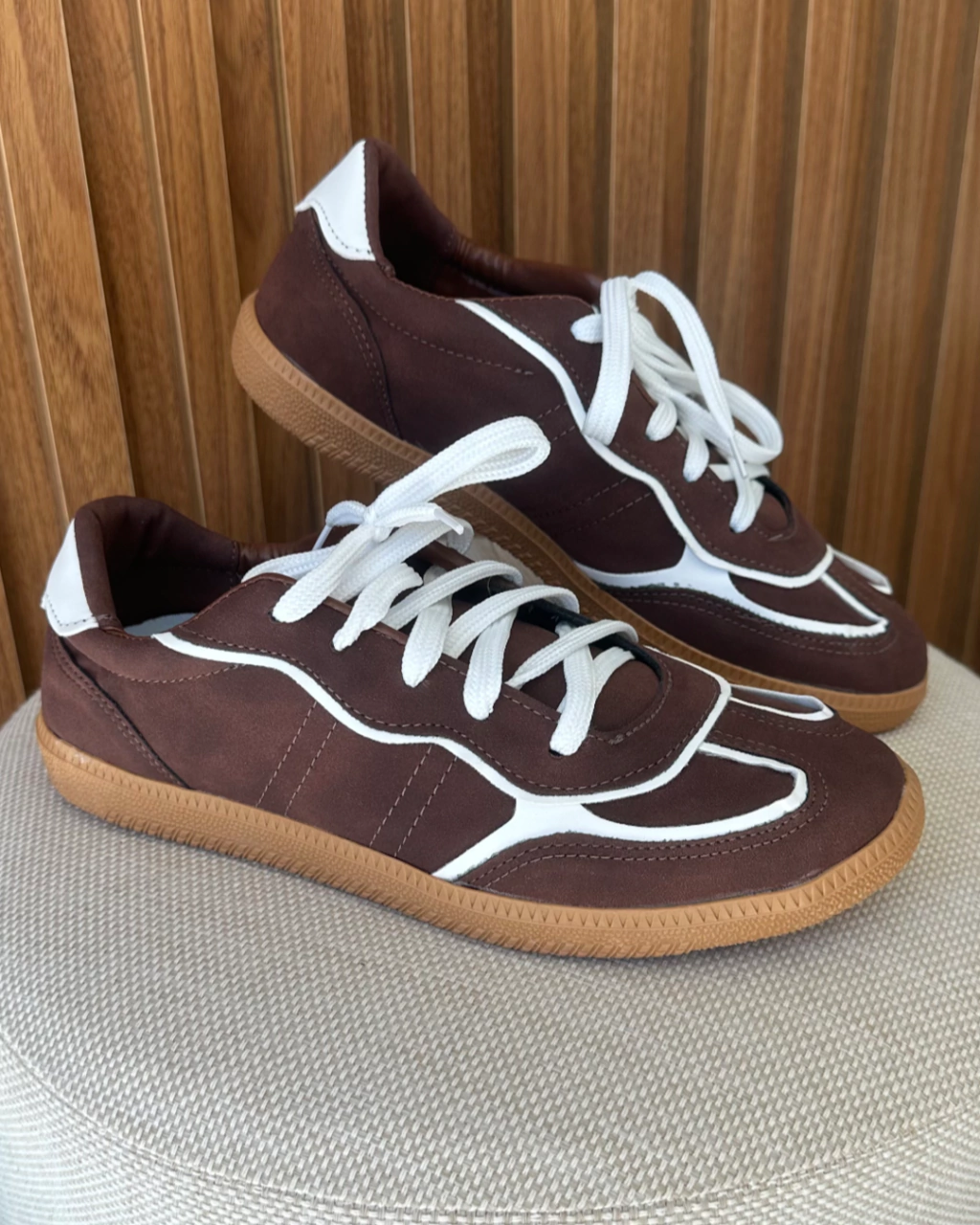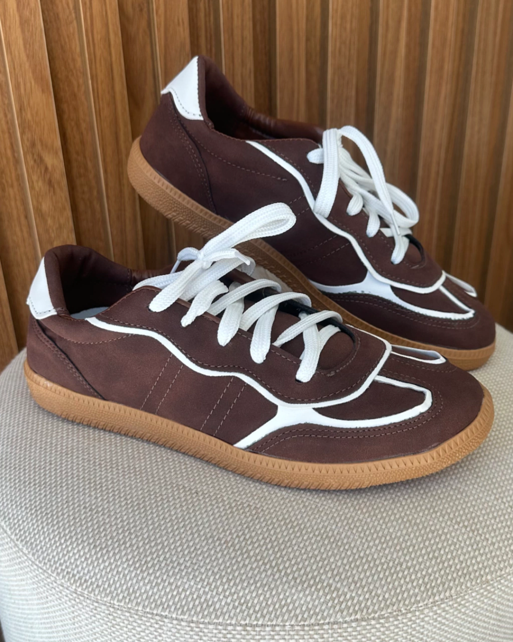 Estilo casual com toque sofisticado. O Tênis Emerita na cor terra com detalhes off white une versatilidade e elegância em um único modelo. Confeccionado em camurça macia, traz um detalhe texturizado na parte traseira que adiciona sofisticação e personalidade ao visual. O solado em tom caramelo oferece contraste harmonioso e moderno, enquanto o salto de 2cm garante conforto e leve elevação ao caminhar.