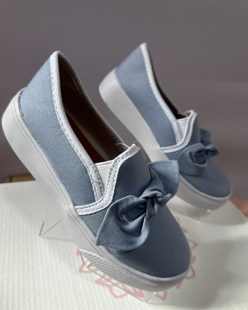 O tênis infantil feminino com laço azul bebê é uma adorável combinação de estilo e delicadeza, perfeito para as pequenas fashionistas. Com um tom suave de azul bebê, este tênis emana uma aura de doçura e inocência. O destaque fica por conta do charmoso laço adornando a parte frontal do calçado, adicionando um toque de feminilidade e elegância.