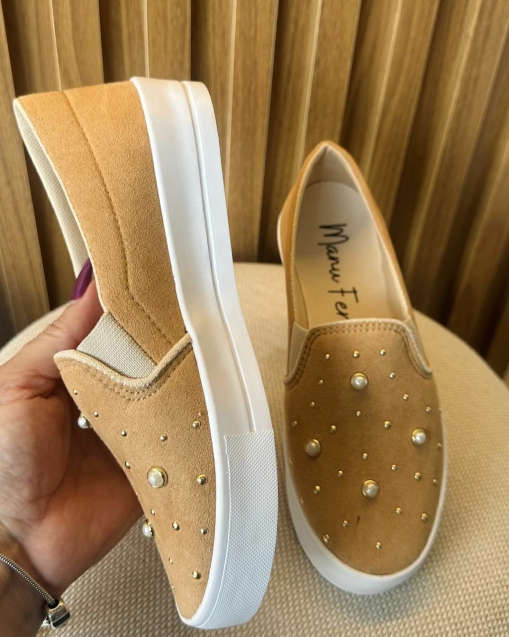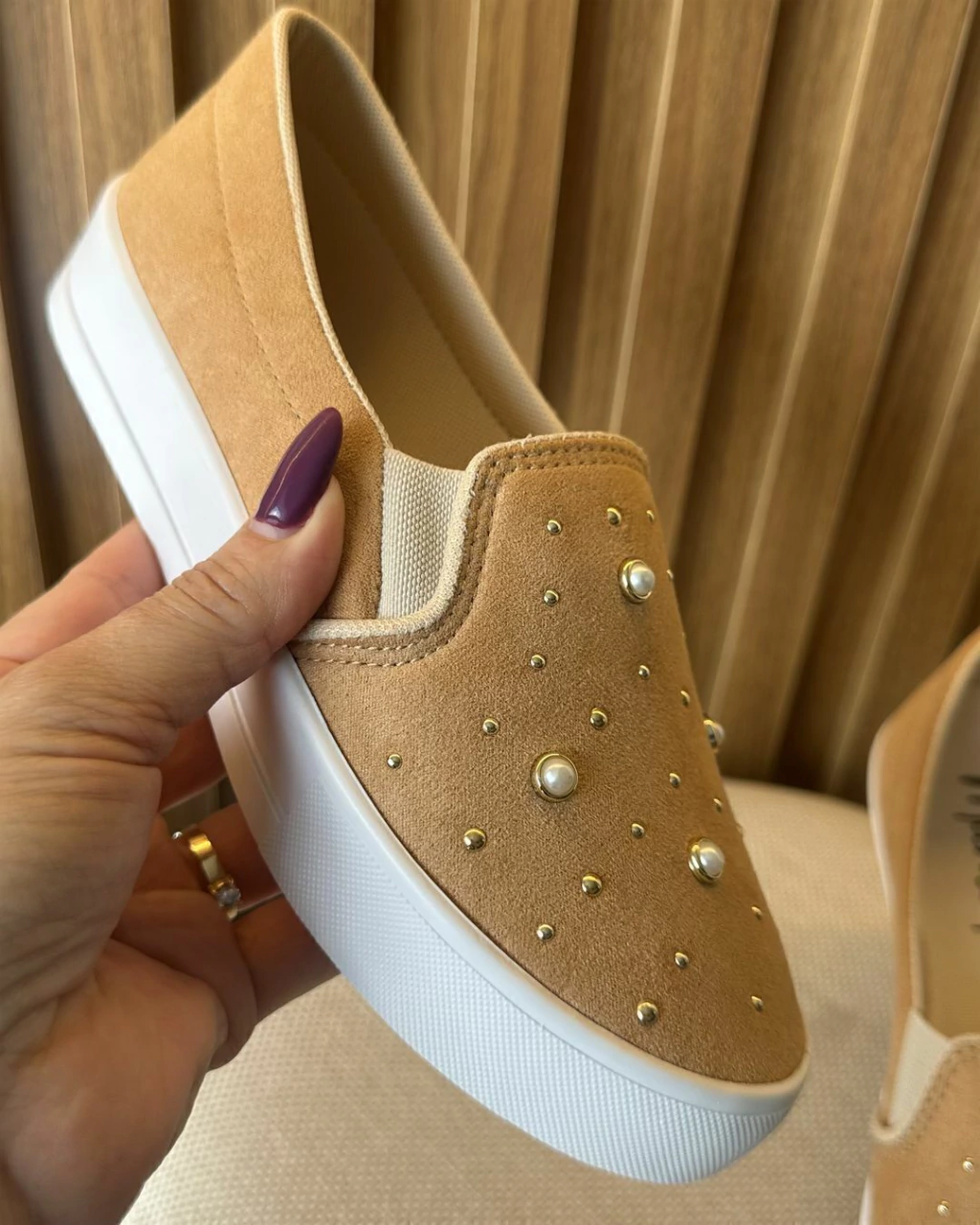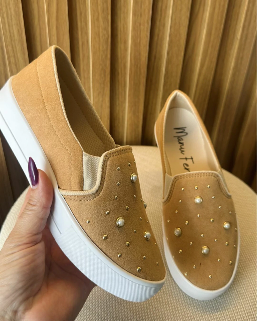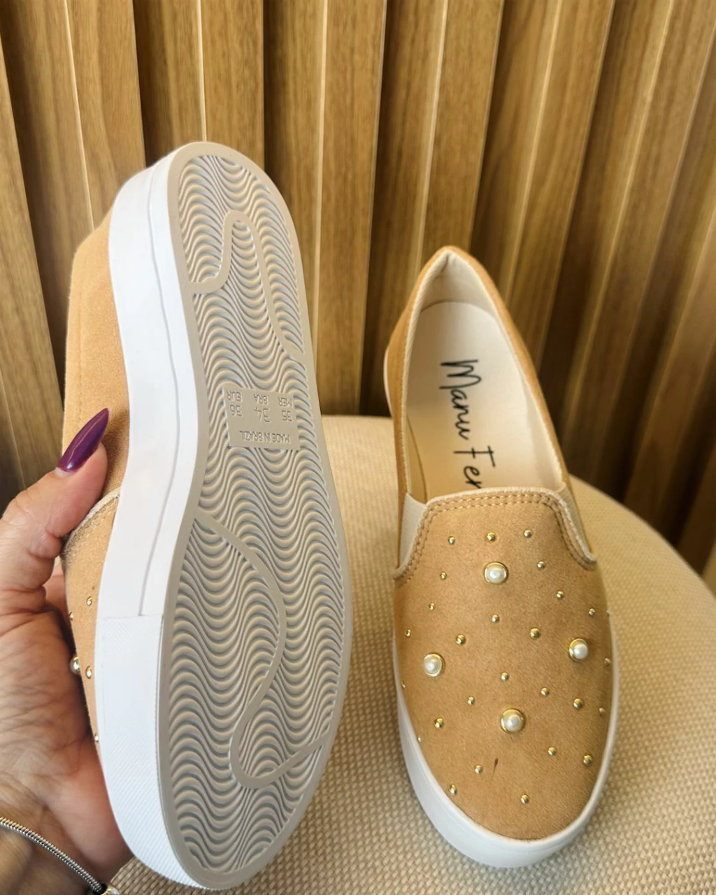 Os Tênis Pérola Nude são um equilíbrio perfeito entre elegância e conforto. Com um tom suave e delicado, semelhante à tonalidade das pérolas, esses tênis adicionam um toque de sofisticação a qualquer visual. Seu design minimalista e atemporal os torna uma escolha versátil, perfeita para diversas ocasiões, desde um passeio descontraído até um evento mais formal. Adicione um toque de classe ao seu guarda-roupa com os tênis Pérola Nude.