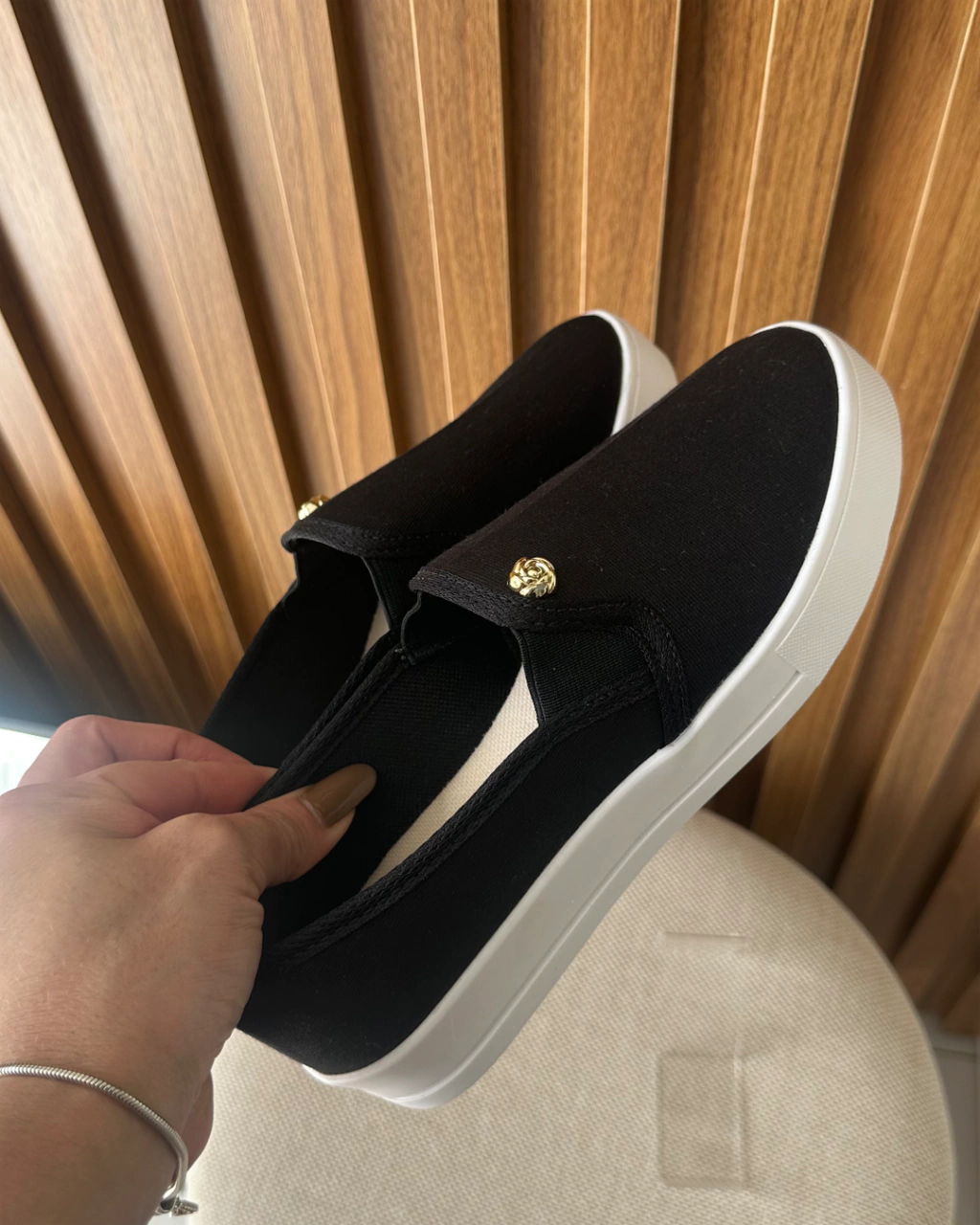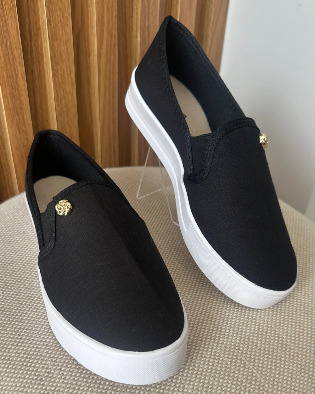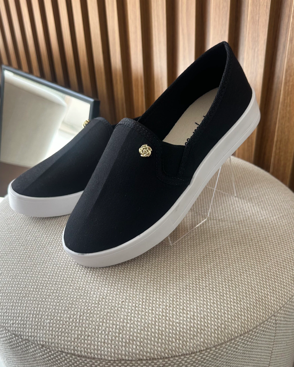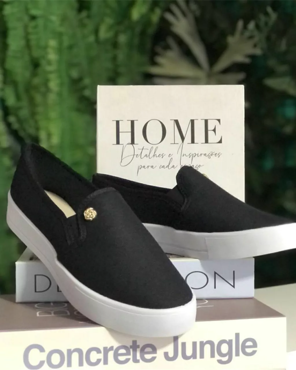O Tênis Slip On preto viés é a definição de estilo e praticidade. Com um design moderno e minimalista, este calçado combina perfeitamente com qualquer look casual ou urbano. Sua cor preta clássica adiciona uma dose de sofisticação, enquanto o detalhe do viés confere um toque de originalidade e elegância.