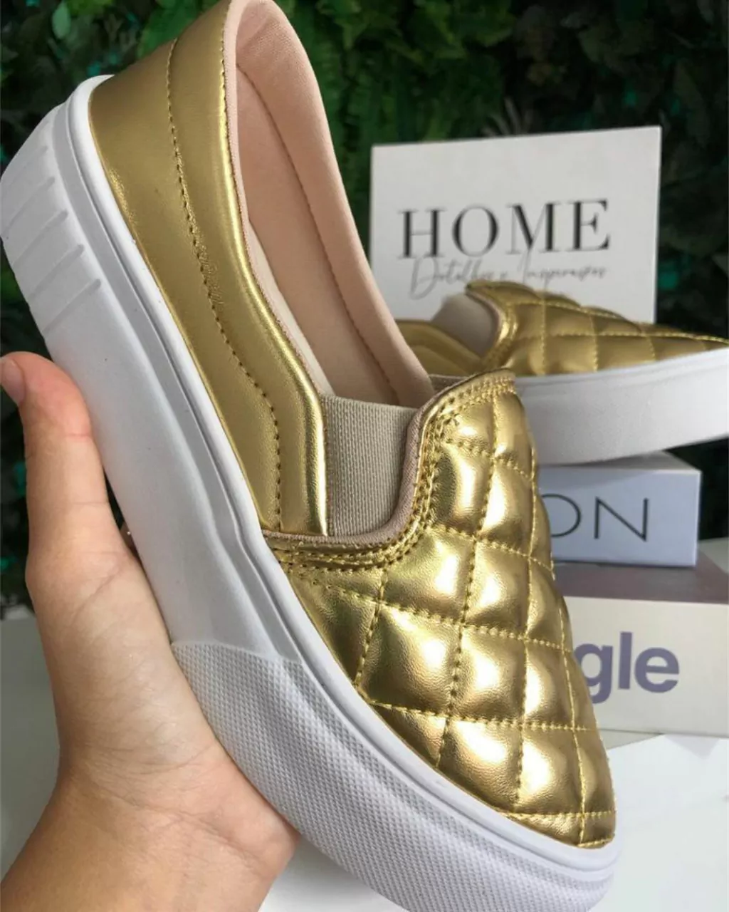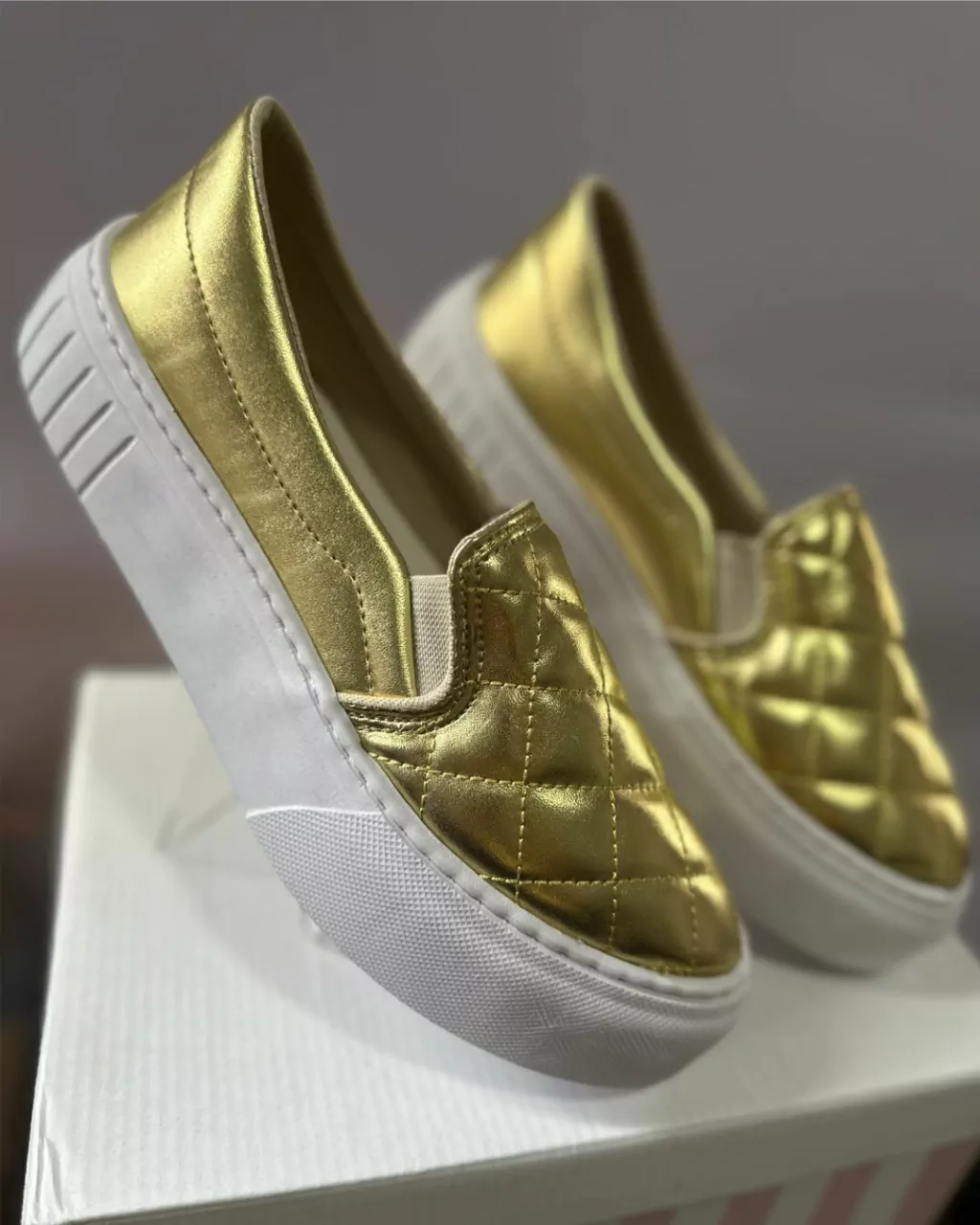 Os tênis Slip On com sola alta na cor ouro matalizado são uma fusão elegante entre conforto e estilo luxuoso. Com um design descomplicado e sem cadarços, eles oferecem praticidade para quem está sempre em movimento. A sola alta adiciona uma dose de sofisticação e destaque, seu estilo versátil combina facilmente com diferentes looks, desde os mais casuais até os mais refinados, tornando-o uma escolha versátil para diversas ocasiões.